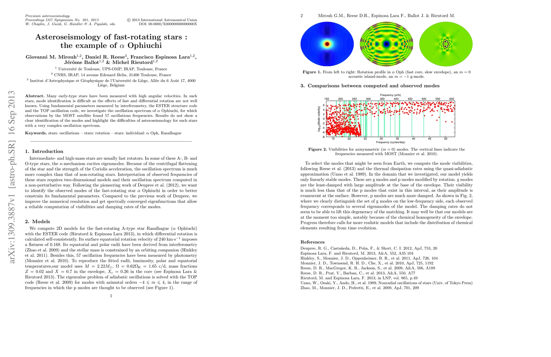 Many early-type stars have been measured with high angular velocities. In such stars, mode identification is difficult as the effects of fast and differential rotation are not well known. Using fundamental parameters measured by interferometry, the ESTER structure code and the TOP oscillation code, we investigate the oscillation spectrum of Rasalhague (alpha Ophiuchi), for which observations by the MOST satellite found 57 oscillations frequencies. Results do not show a clear identification of the modes and highlight the difficulties of asteroseismology for such stars with a very complex oscillation spectrum.