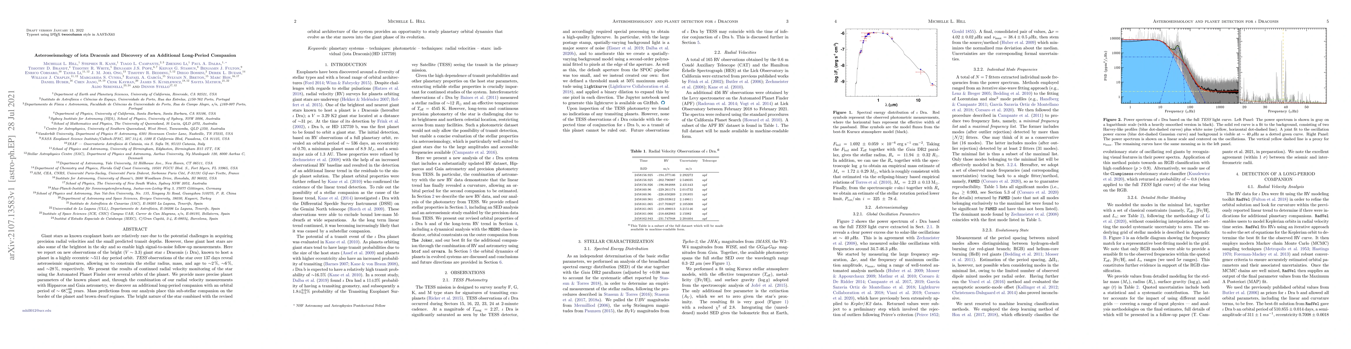 This paper reports on asteroseismic observations of the bright giant star $\iota$ Draconis, revealing precise stellar parameters and confirming the presence of a known eccentric planet. Additionally, it discovers a new long-period sub-stellar companion with an orbital period of ~$68^{+60}_{-36}$ years, providing insights into planetary dynamics during the star's evolution.