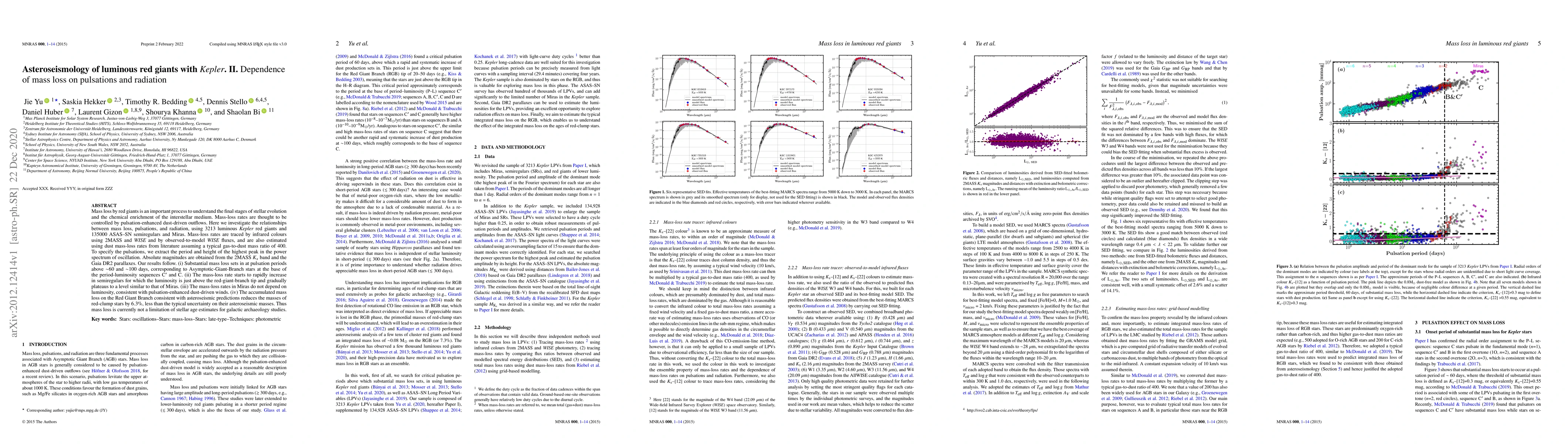 This paper investigates the relationship between mass loss, pulsations, and radiation in luminous red giants using Kepler data and compares it with ASAS-SN observations. It finds that mass loss significantly increases for pulsation periods above 60-100 days, and that mass loss rates in Miras are driven by pulsation-enhanced dust-driven winds, while mass loss does not significantly affect stellar age estimates for galactic archaeology.