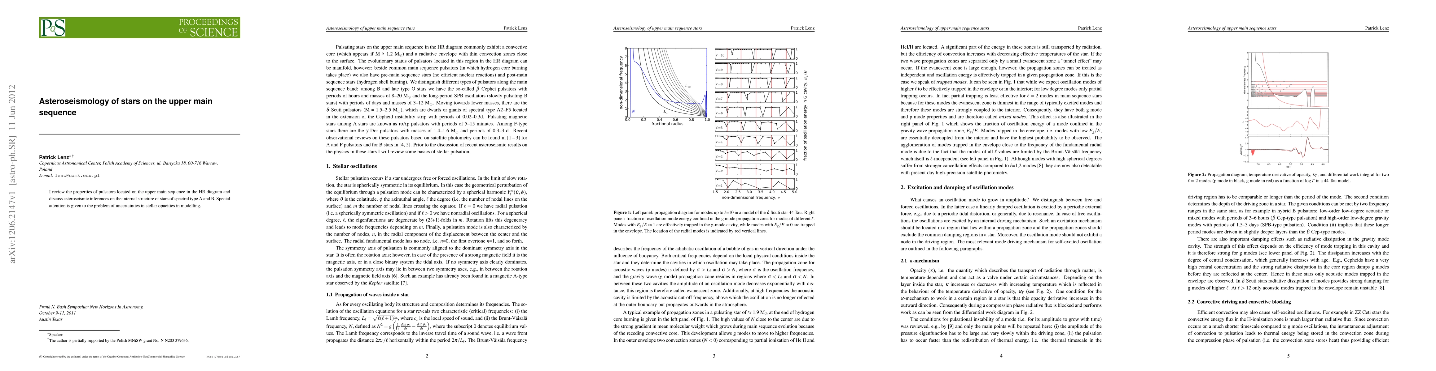 I review the properties of pulsators located on the upper main sequence in the HR diagram and discuss asteroseismic inferences on the internal structure of stars of spectral type A and B. Special attention is given to the problem of uncertainties in stellar opacities in modelling.
