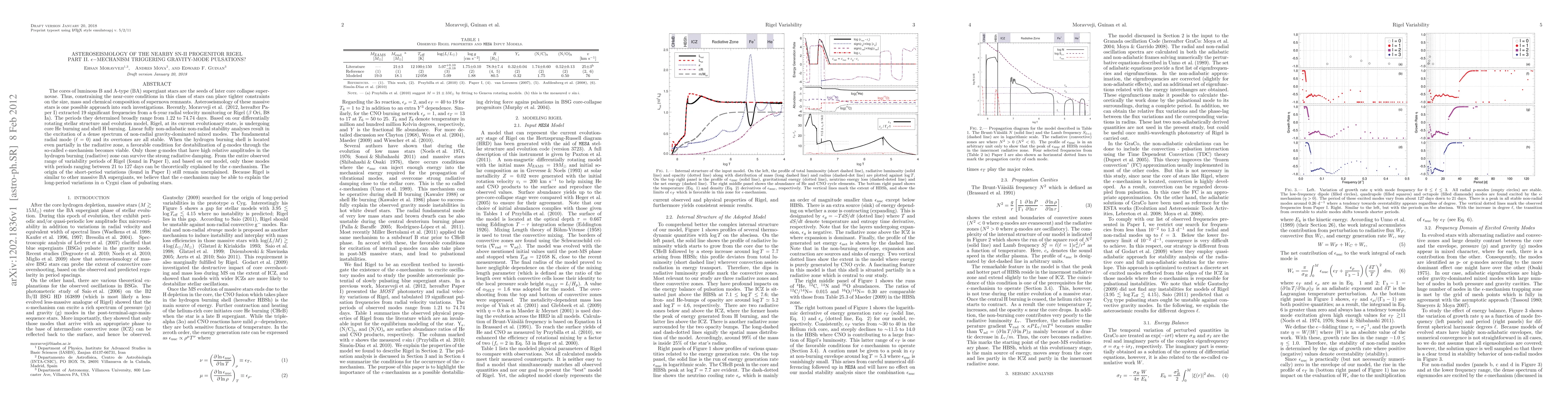 The cores of luminous B and A-type (BA) supergiant stars are the seeds of later core collapse supernovae. Thus, constraining the near-core conditions in this class of stars can place tighter constraints on the size, mass and chemical composition of supernova remnants. Asteroseismology of these massive stars is one possible approach into such investigations. Recently, Moravveji et al. (2012, hereafter Paper I) extracted 19 significant frequencies from a 6-year radial velocity monitoring or Rigel (\beta Ori, B8 Ia). The periods they determined broadly range from 1.22 to 74.74 days. Based on our differentially rotating stellar structure and evolution model, Rigel, at it's current evolutionary state, is undergoing core He burning and shell H burning. Linear fully non-adiabatic non-radial stability analyses result in the excitation of a dense spectrum of non-radial gravity-dominated mixed modes. The fundamental radial mode (\ell=0) and its overtones are all stable. When the hydrogen burning shell is located even partially in the radiative zone, a favorable condition for destabilization of g-modes through the so-called \epsilon-mechanism becomes viable. Only those g-modes that have high relative amplitudes in the hydrogen burning (radiative) zone can survive the strong radiative damping. From the entire observed range of variability periods of Rigel (found in Paper I), and based on our model, only those modes with periods ranging between 21 to 127 days can be theoretically explained by the \epsilon-mechanism. The origin of the short-period variations (found in Paper I) still remain unexplained. Because Rigel is similar to other massive BA supergiants, we believe that the \epsilon-mechanism may be able to explain the long-period variations in \alpha Cygni class of pulsating stars.