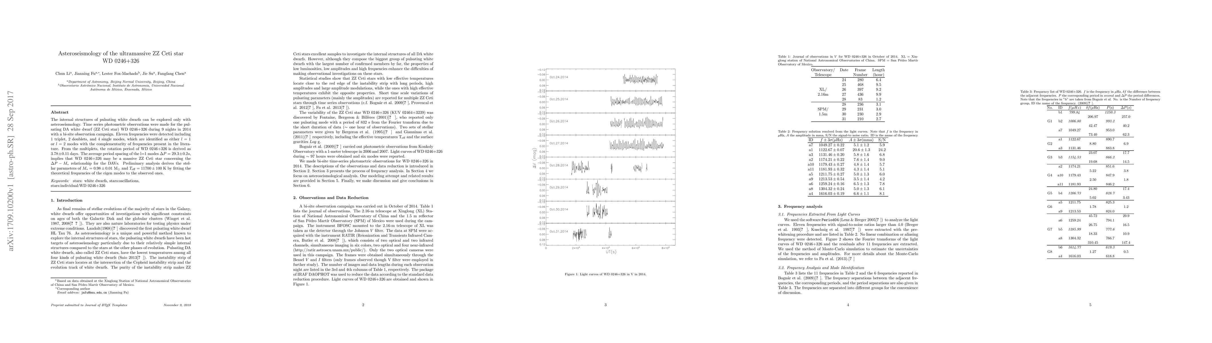 This study uses asteroseismology to analyze the internal structure of the ultramassive ZZ Ceti star WD 0246+326, identifying 11 pulsation frequencies and deriving its rotation period as 3.78±0.11 days. The analysis suggests the star is a massive ZZ Ceti with a stellar mass of 0.98±0.01 M☉ and an effective temperature of 11700±100 K.