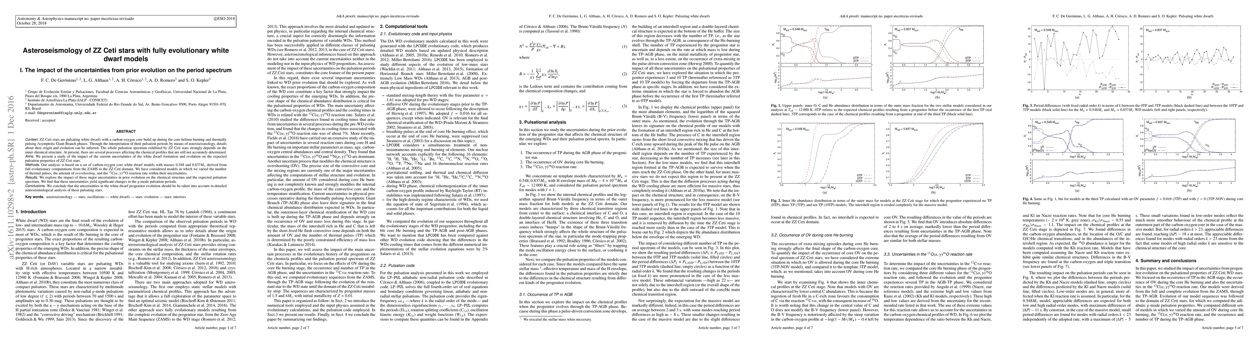 This study investigates how uncertainties in the prior evolution of white dwarfs affect the pulsation spectrum of ZZ Ceti stars, finding that variations in thermal pulses, overshooting, and reaction rates significantly alter the expected g-mode pulsation periods. The research emphasizes the importance of accounting for these uncertainties in detailed asteroseismological analyses.