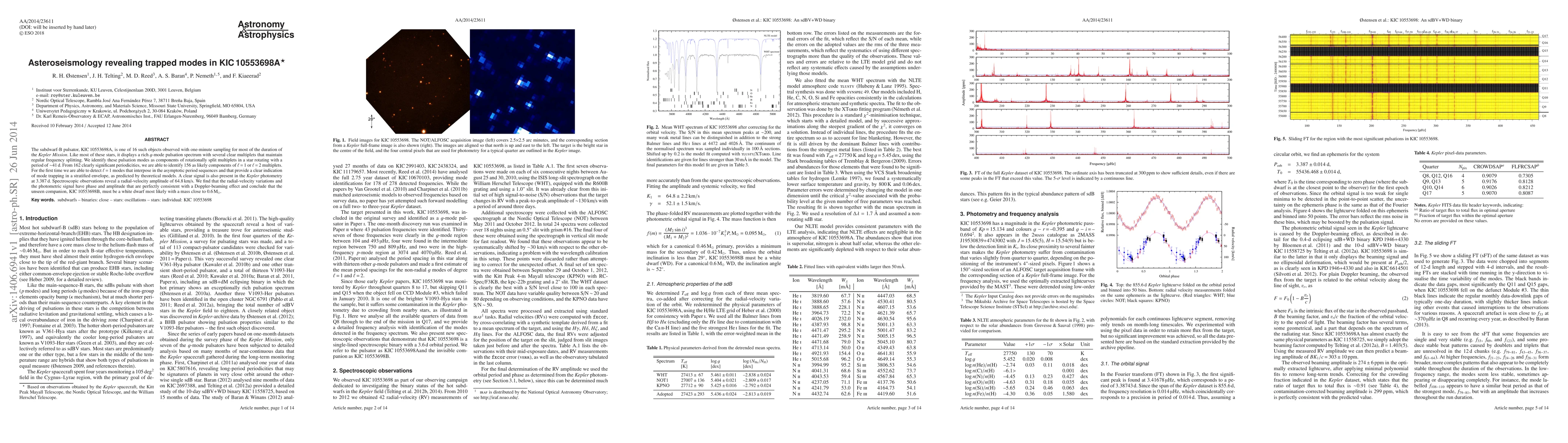 This study identifies rotationally split g-mode pulsations in the subdwarf-B pulsator KIC 10553698A, revealing trapped modes in its stratified envelope. The analysis also identifies a white dwarf companion, KIC 10553698B, causing Doppler-beaming effects.