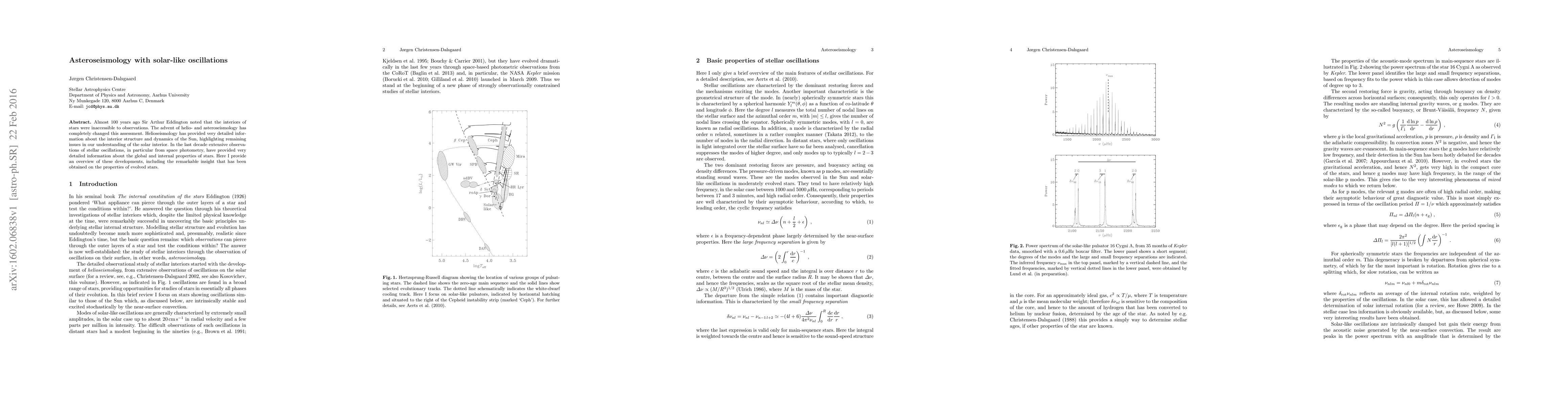 Almost 100 years ago Sir Arthur Eddington noted that the interiors of stars were inaccessible to observations. The advent of helio- and asteroseismology has completely changed this assessment. Helioseismology has provided very detailed information about the interior structure and dynamics of the Sun, highlighting remaining issues in our understanding of the solar interior. In the last decade extensive observations of stellar oscillations, in particular from space photometry, have provided very detailed information about the global and internal properties of stars. Here I provide an overview of these developments, including the remarkable insight that has been obtained on the properties of evolved stars.