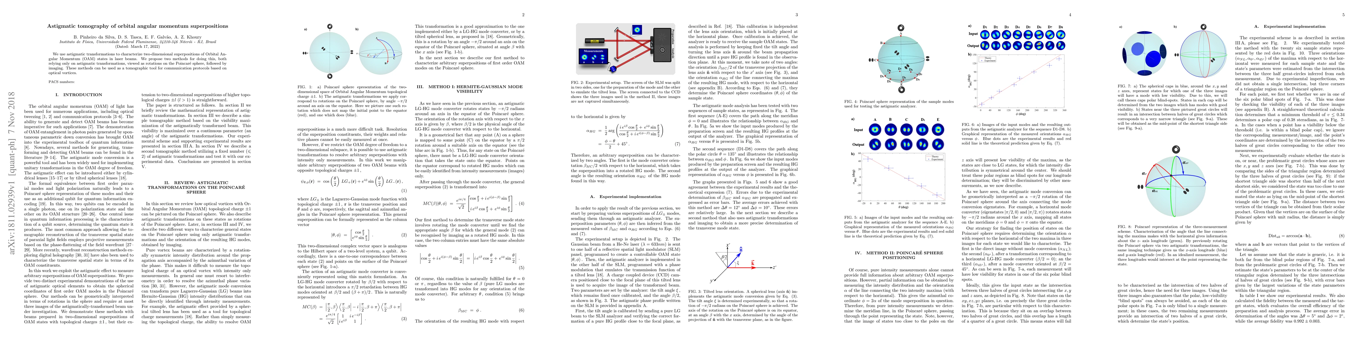We use astigmatic transformations to characterize two-dimensional superpositions of Orbital Angular Momentum (OAM) states in laser beams. We propose two methods for doing this, both relying only on astigmatic transformations, viewed as rotations on the Poincar\'e sphere, followed by imaging. These methods can be used as a tomographic tool for communication protocols based on optical vortices.