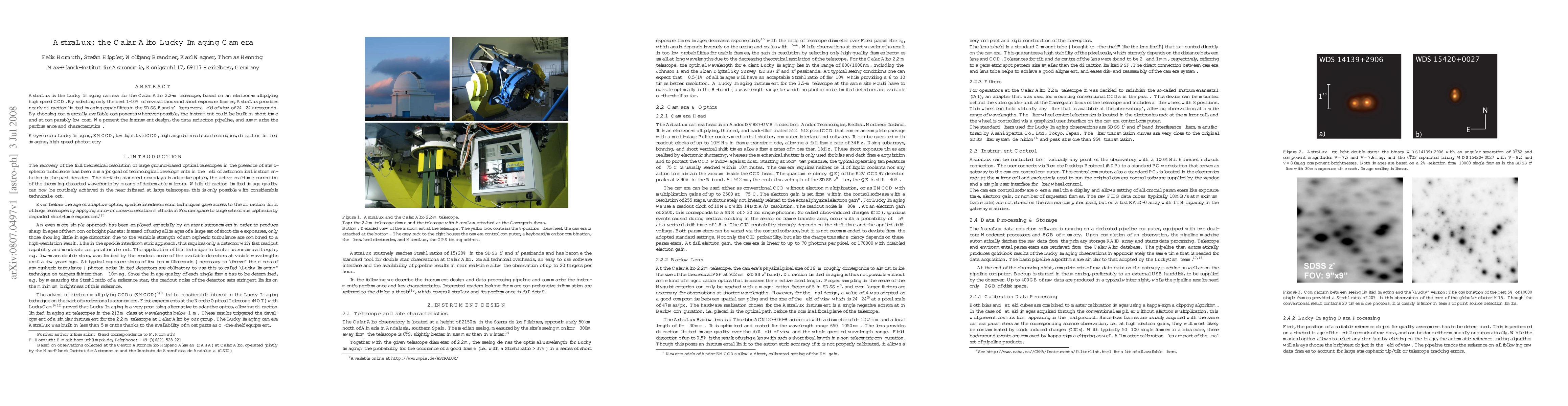 AstraLux is a Lucky Imaging camera for the Calar Alto 2.2-m telescope, utilizing an electron-multiplying high-speed CCD to select the best frames for nearly diffraction-limited imaging in SDSS i' and z' filters. The instrument was designed with commercially available components for quick and cost-effective construction.
