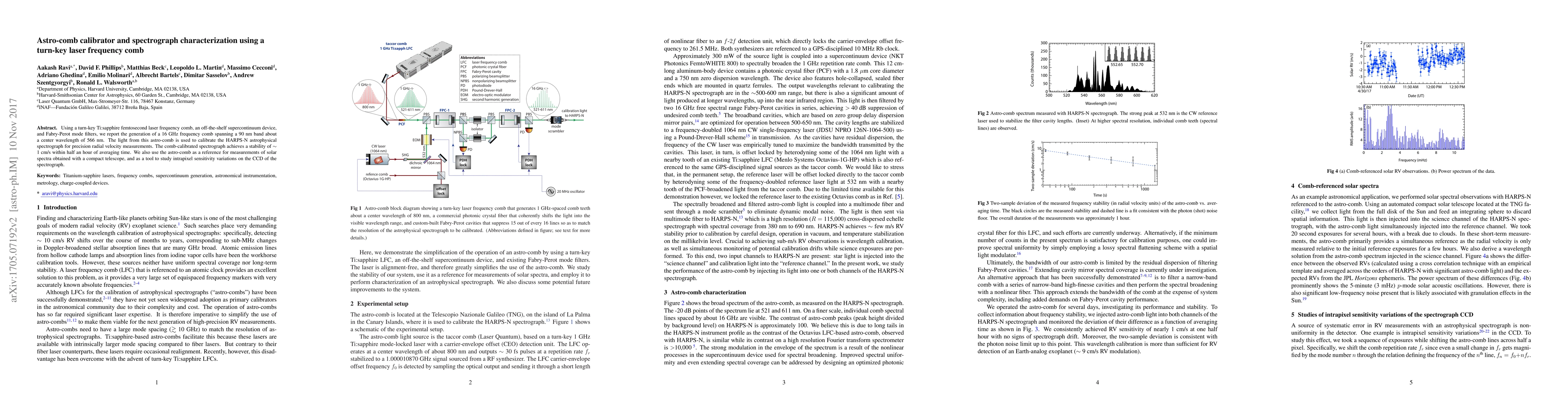 The paper reports the use of a turn-key laser frequency comb to calibrate the HARPS-N spectrograph, achieving radial velocity measurement stability of ~1 cm/s. The astro-comb also serves as a reference for solar spectrum measurements and for studying CCD intrapixel sensitivity variations.