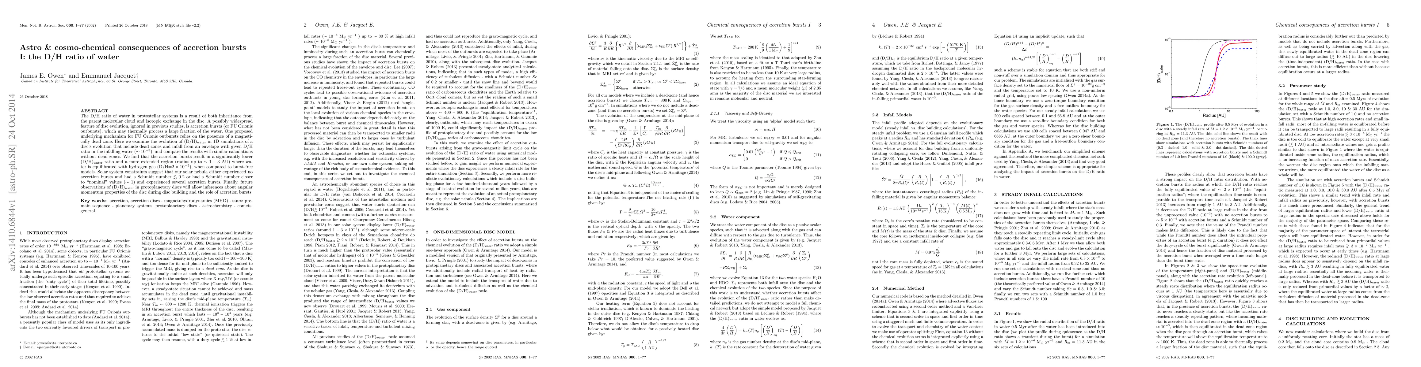 This paper investigates how accretion bursts in protostellar discs affect the deuterium to hydrogen (D/H) ratio of water, finding that bursts significantly lower the D/H ratio and extend the region where water equilibrates with hydrogen gas. The study suggests that the solar nebula either had no accretion bursts or experienced several, with implications for future observations of protoplanetary discs.