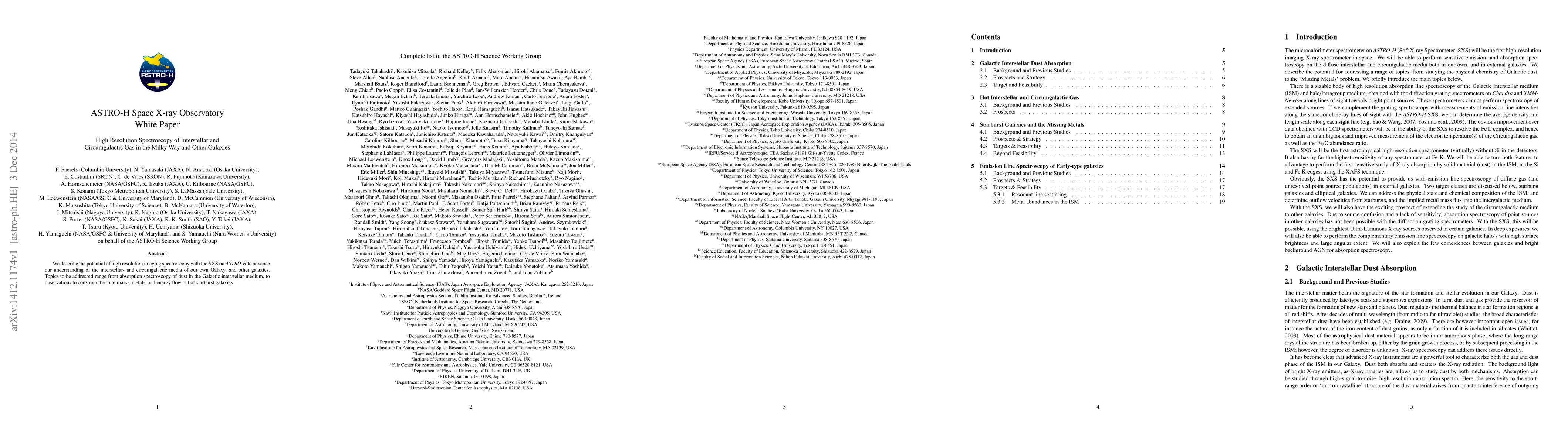 The ASTRO-H White Paper outlines the capabilities of high resolution spectroscopy with the SXS to enhance our comprehension of interstellar and circumgalactic gas in the Milky Way and other galaxies, focusing on dust absorption and mass, metal, and energy flow in starburst galaxies.