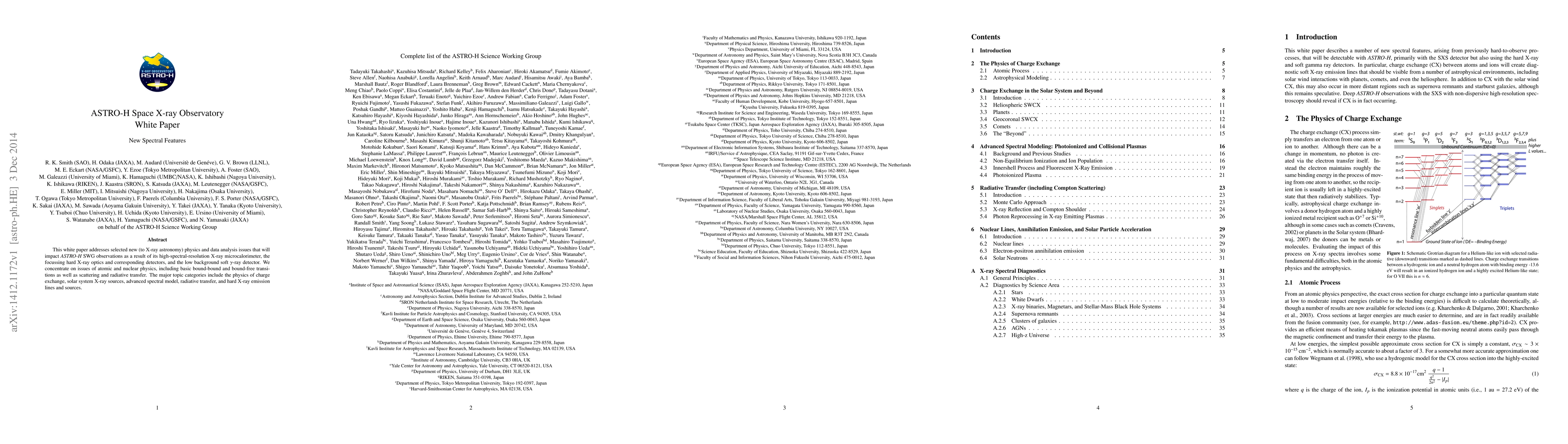 This white paper explores new physics and data analysis challenges in X-ray astronomy enabled by ASTRO-H's high-resolution microcalorimeter and advanced optics, focusing on atomic and nuclear processes, charge exchange, solar system sources, and hard X-ray emissions. It addresses fundamental transitions, scattering, and radiative transfer.