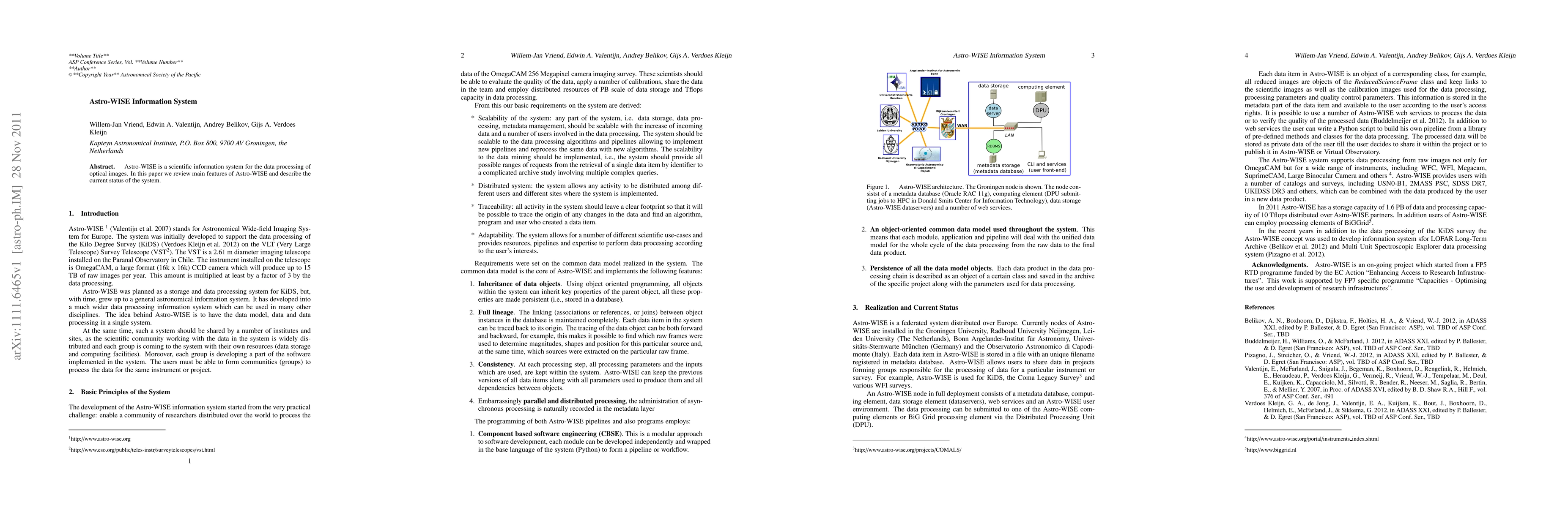 Astro-WISE is a scientific information system designed for processing optical images. This paper reviews its main features and provides an update on the current status of the system.