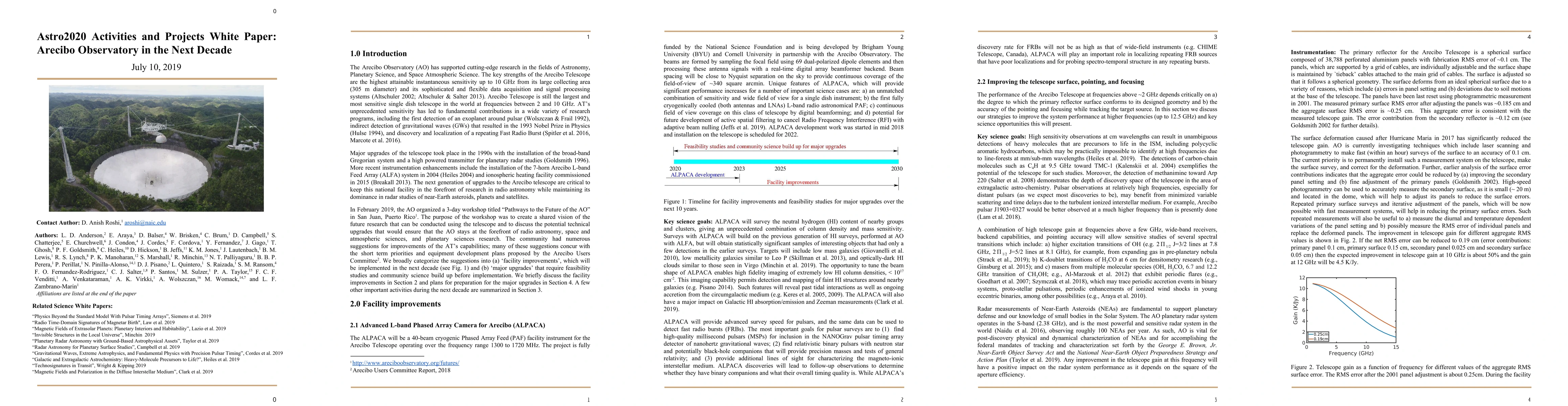 The white paper discusses Arecibo Observatory's plan for facility improvements and activities over the next decade. The facility improvements include: (a) improving the telescope surface, pointing and focusing to achieve superb performance up to ~12.5 GHz; (b) equip the telescope with ultrawide-band feeds; (c) upgrade the instrumentation with a 4 GHz bandwidth high dynamic range digital link and a universal backend and (d) augment the VLBI facility by integrating the 12m telescope for phase referencing. These upgrades to the Arecibo telescope are critical to keep the national facility in the forefront of research in radio astronomy while maintaining its dominance in radar studies of near-Earth asteroids, planets and satellites. In the next decade, the Arecibo telescope will play a synergistic role with the upcoming facilities such as ngVLA, SKA and the now commissioned FAST telescope. Further, the observatory will be actively engaged in mentoring and training programs for students from a diverse background.