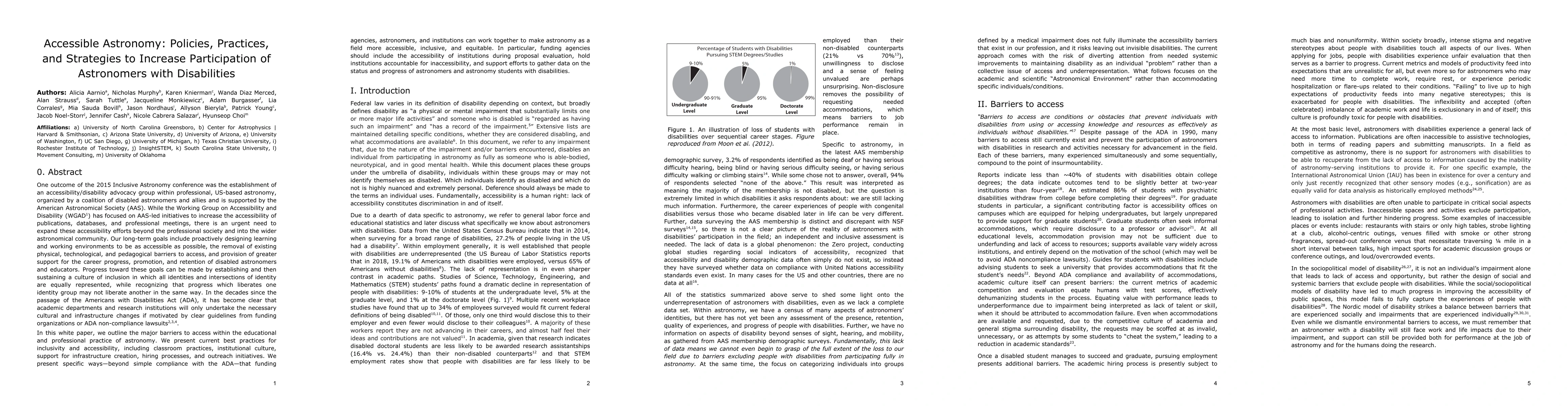 This white paper aims to increase participation of astronomers with disabilities in astronomy by identifying barriers and presenting strategies for inclusivity and accessibility. It recommends actions for funding agencies, institutions, and astronomers to make the field more accessible and equitable.