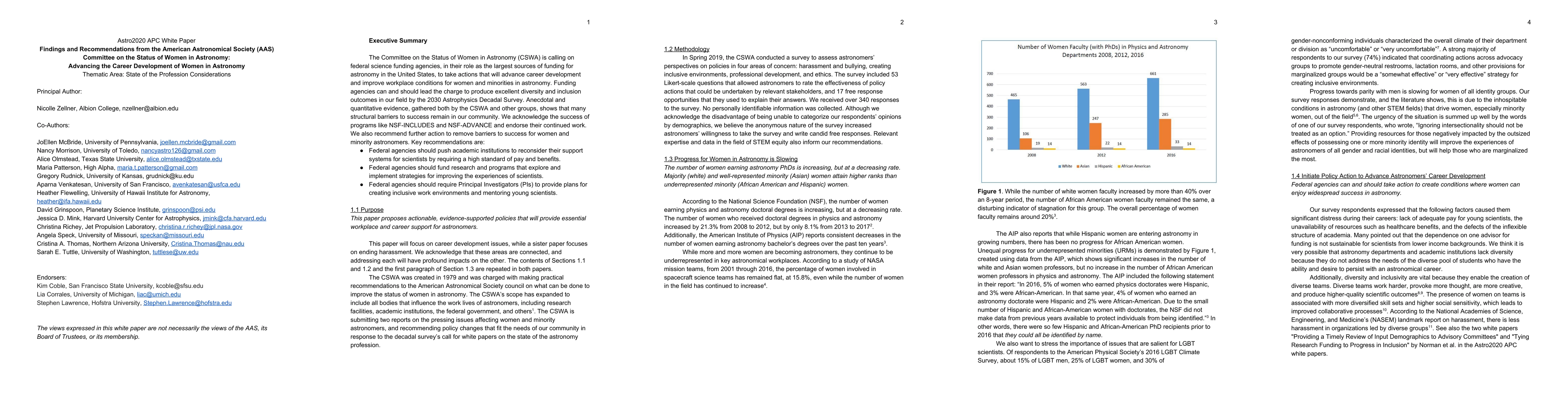 The Astro2020 APC White Paper by the Committee on the Status of Women in Astronomy calls for federal science funding agencies to advance the career development and improve workplace conditions for women and minorities in astronomy. Key recommendations include pushing academic institutions to improve support systems and requiring Principal Investigators to create inclusive work environments.