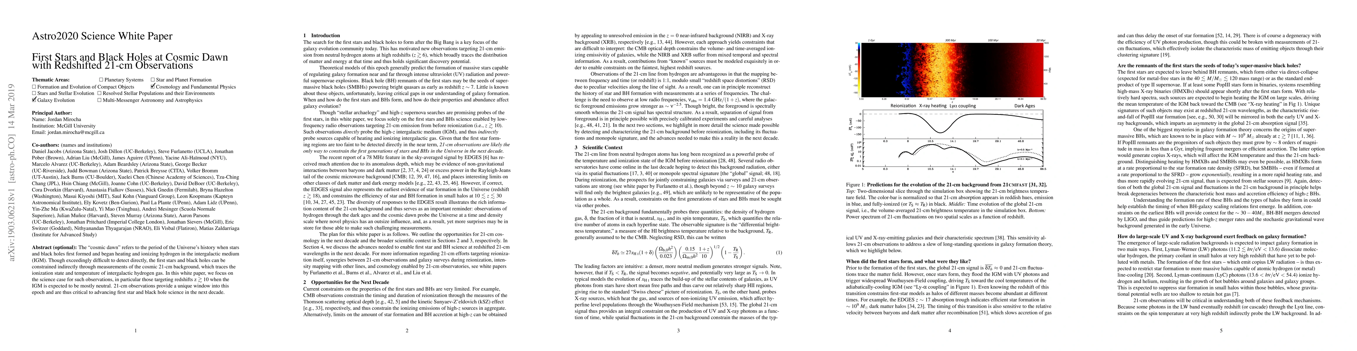 This paper explores the potential of redshifted 21-cm observations to reveal the formation of the first stars and black holes during the "cosmic dawn," a period when the Universe began heating and ionizing hydrogen. These observations, particularly at redshifts z $\gtrsim$ 10, offer a unique window into the mostly neutral intergalactic medium, crucial for advancing our understanding of early cosmic structures.