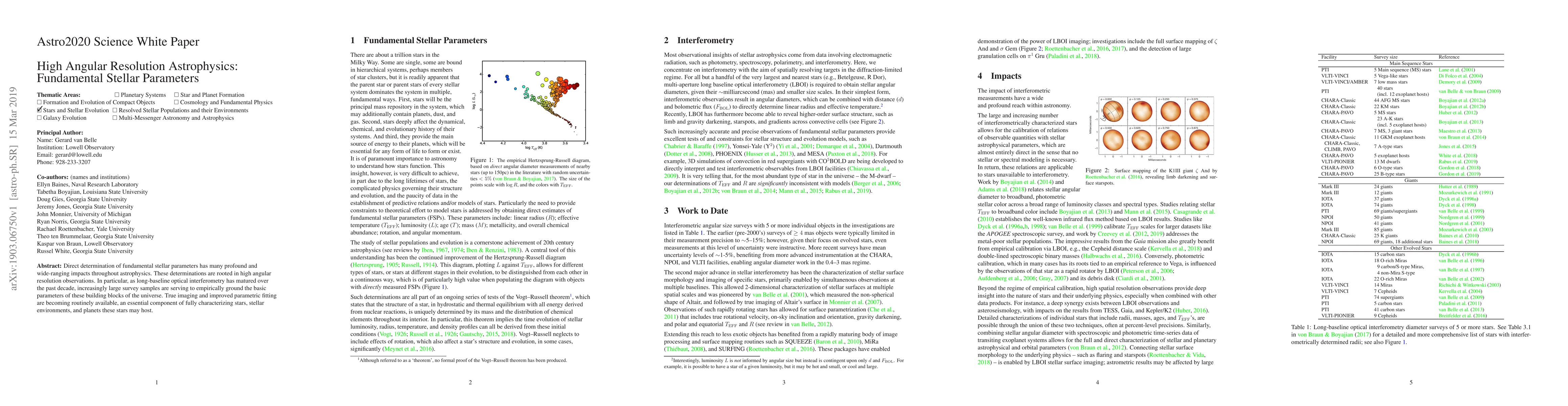 The Astro2020 White Paper emphasizes the importance of high angular resolution observations, particularly through long-baseline optical interferometry, for accurately determining fundamental stellar parameters, which are crucial for understanding the universe's building blocks and their environments. Advances in true imaging and parametric fitting are enabling more comprehensive characterizations of stars and their planetary systems.