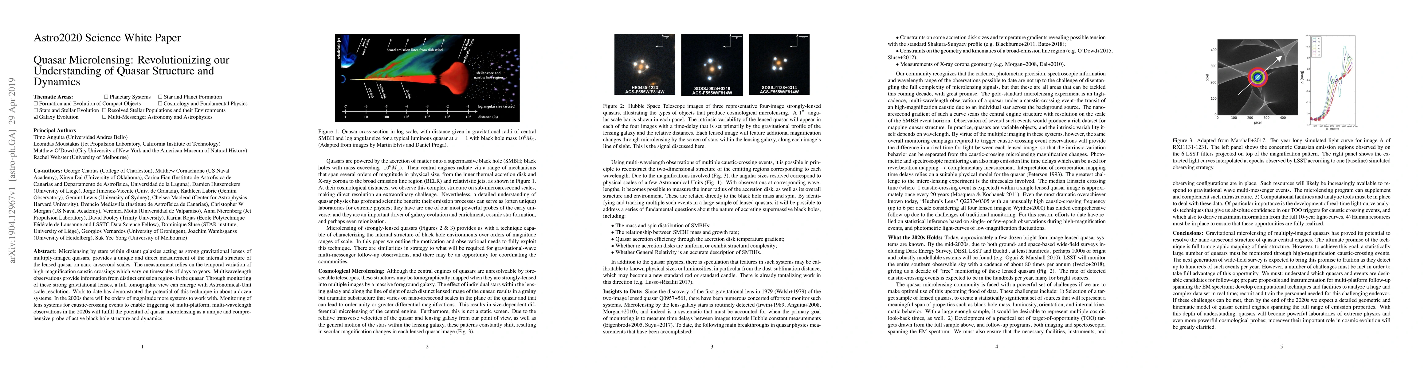 Microlensing by stars within distant galaxies acting as strong gravitational lenses of multiply-imaged quasars, provides a unique and direct measurement of the internal structure of the lensed quasar on nano-arcsecond scales. The measurement relies on the temporal variation of high-magnification caustic crossings which vary on timescales of days to years. Multiwavelength observations provide information from distinct emission regions in the quasar. Through monitoring of these strong gravitational lenses, a full tomographic view can emerge with Astronomical-Unit scale resolution. Work to date has demonstrated the potential of this technique in about a dozen systems. In the 2020s there will be orders of magnitude more systems to work with. Monitoring of lens systems for caustic-crossing events to enable triggering of multi-platform, multi-wavelength observations in the 2020s will fulfill the potential of quasar microlensing as a unique and comprehensive probe of active black hole structure and dynamics.