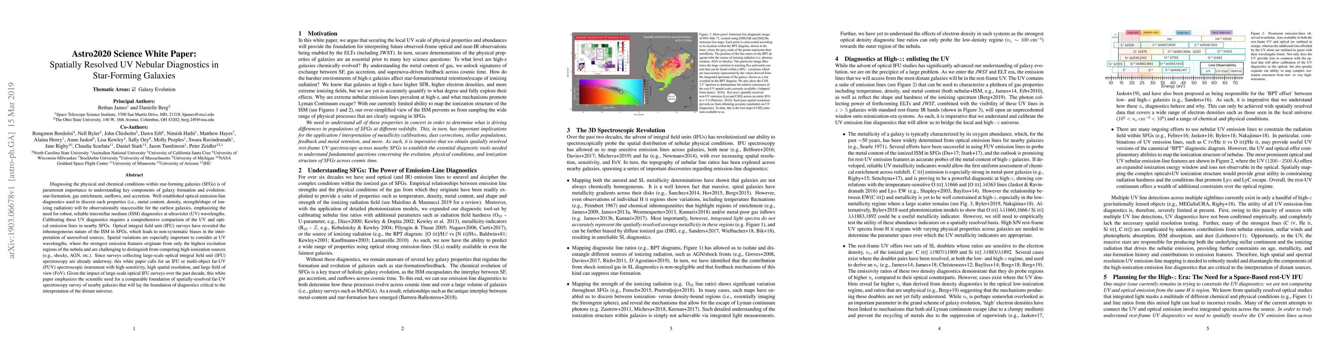 This paper discusses the necessity for spatially resolved ultraviolet (UV) nebular diagnostics in star-forming galaxies to understand galaxy formation and evolution, emphasizing the limitations of optical emission-line diagnostics. It calls for a high-sensitivity, high-resolution far-UV spectroscopic instrument to complement existing optical surveys and provide critical diagnostics for interpreting the distant universe.