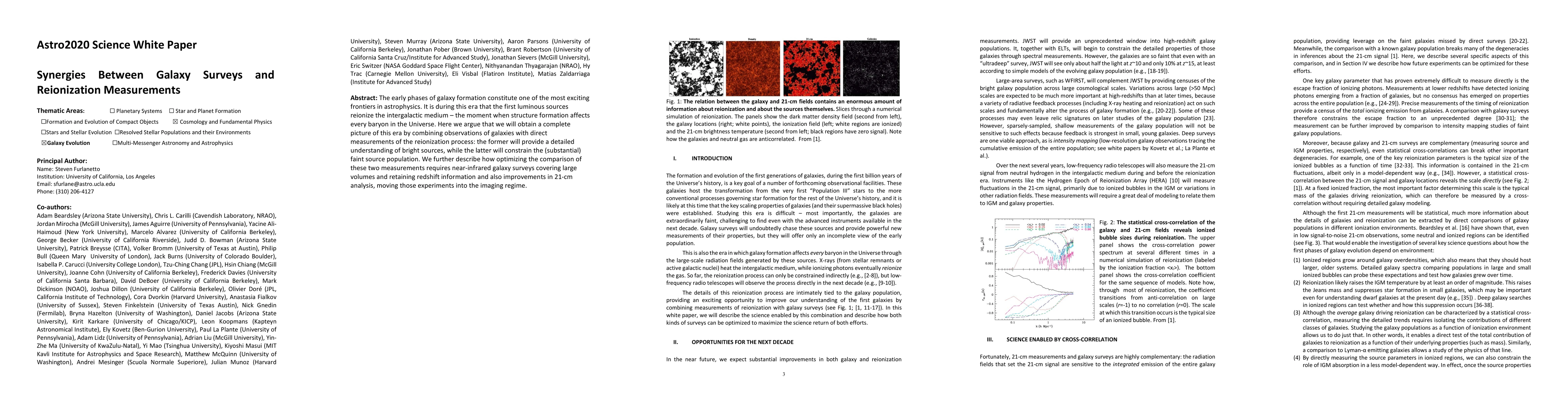 The early phases of galaxy formation constitute one of the most exciting frontiers in astrophysics. It is during this era that the first luminous sources reionize the intergalactic medium - the moment when structure formation affects every baryon in the Universe. Here we argue that we will obtain a complete picture of this era by combining observations of galaxies with direct measurements of the reionization process: the former will provide a detailed understanding of bright sources, while the latter will constrain the (substantial) faint source population. We further describe how optimizing the comparison of these two measurements requires near-infrared galaxy surveys covering large volumes and retaining redshift information and also improvements in 21-cm analysis, moving those experiments into the imaging regime.