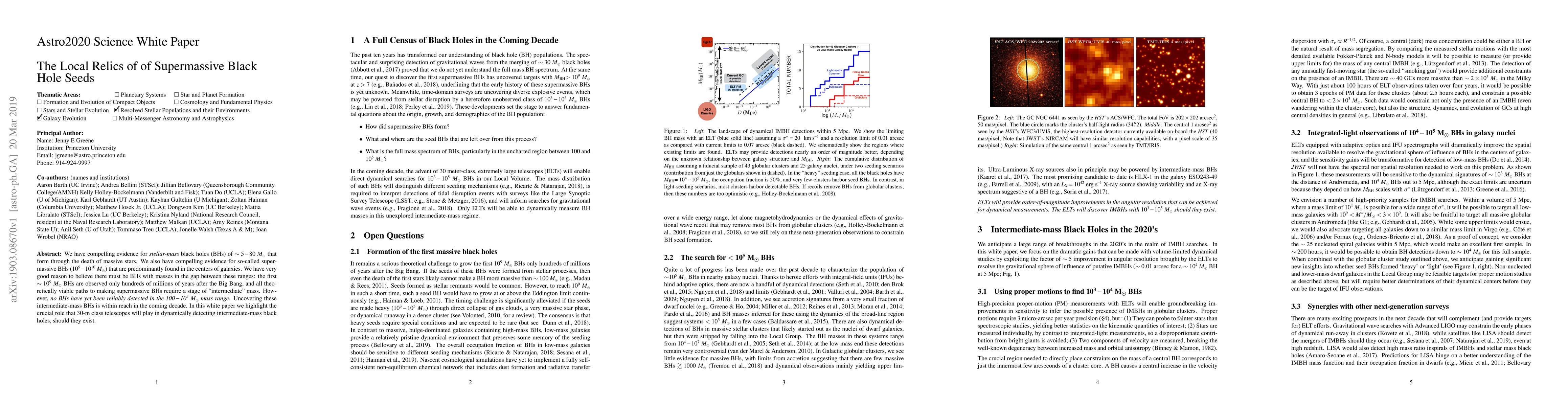The paper discusses the missing link in black hole mass range, from stellar to supermassive black holes. It emphasizes the potential of 30-m class telescopes in detecting intermediate-mass black holes (10^3-10^5 M_sun) in the coming decade, which are crucial for understanding the formation of supermassive black holes.
