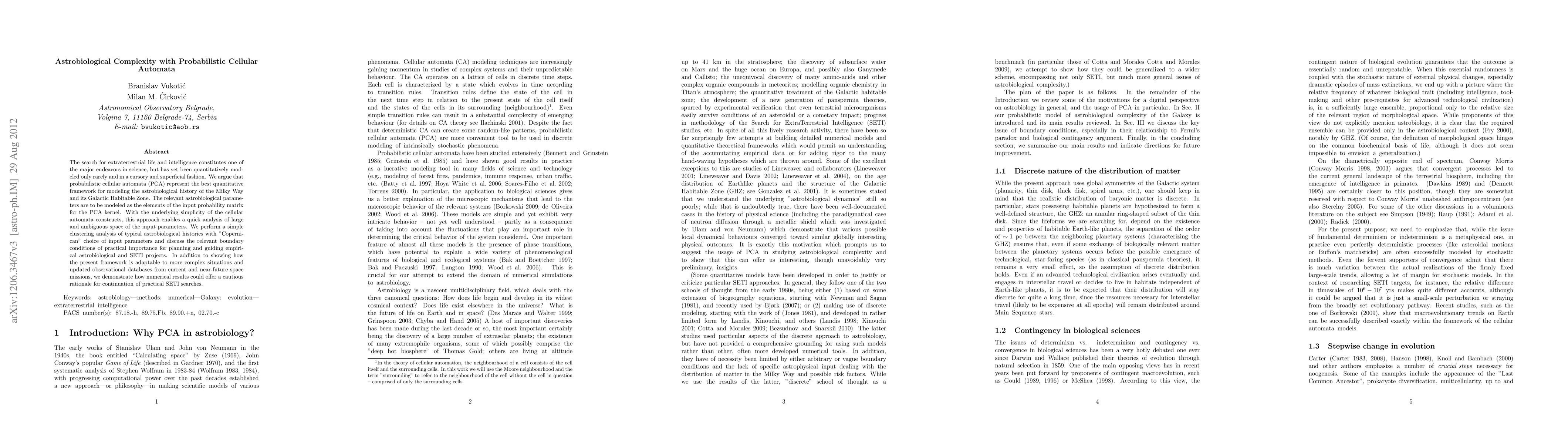 This paper proposes probabilistic cellular automata (PCA) as a quantitative framework for modeling the astrobiological history of the Milky Way, enabling analysis of large, ambiguous input parameters. It discusses how PCA can guide practical astrobiological and SETI projects and suggests that numerical results may support the continuation of SETI searches.