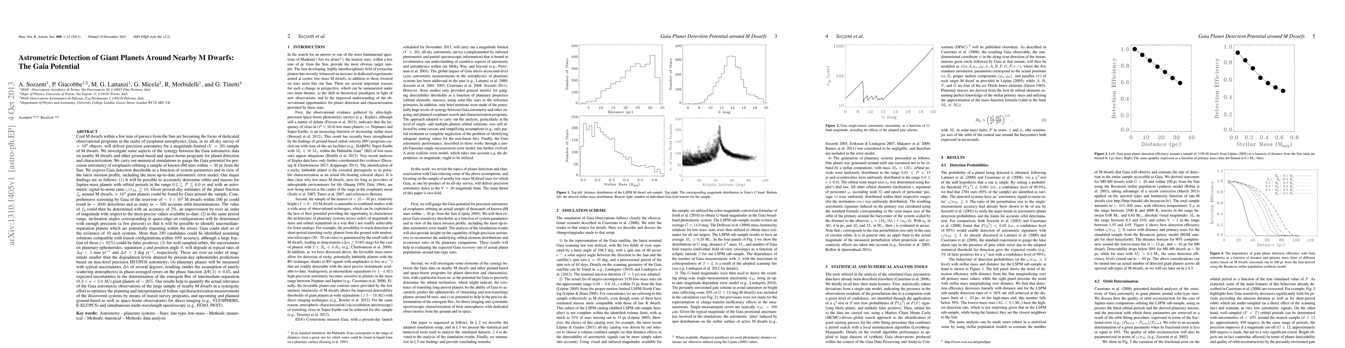 The Gaia mission has the potential to detect and accurately determine the orbits and masses of Jupiter-mass planets around nearby M dwarfs, with up to 2600 detections and 500 accurate orbit determinations possible. Gaia could also identify intermediate-separation planets potentially transiting and measure their phase functions with uncertainties of 0.05.