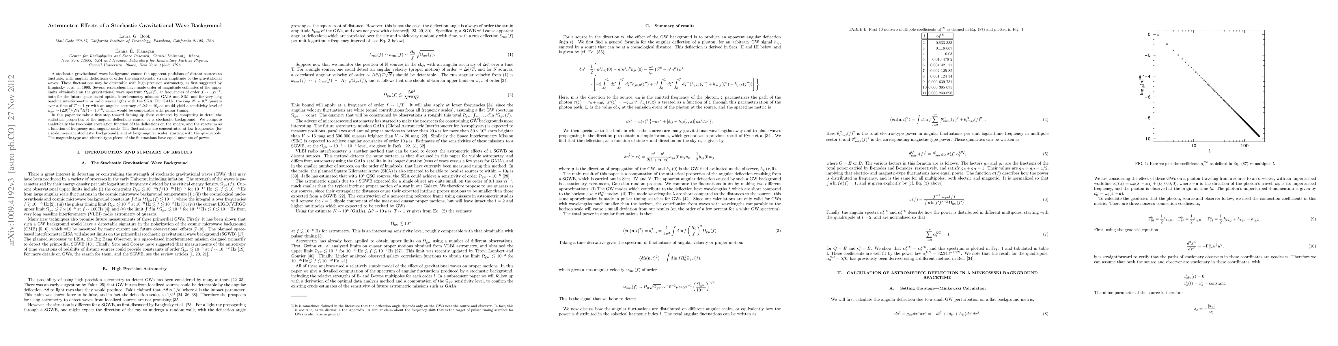 This paper investigates the astrometric effects of a stochastic gravitational wave background, showing that it causes fluctuations in the apparent positions of distant sources detectable via high precision astrometry. The study computes the statistical properties of these angular deflections, revealing that the fluctuations are most prominent at low frequencies and large angular scales, with equal power in magnetic-type and electric-type components.