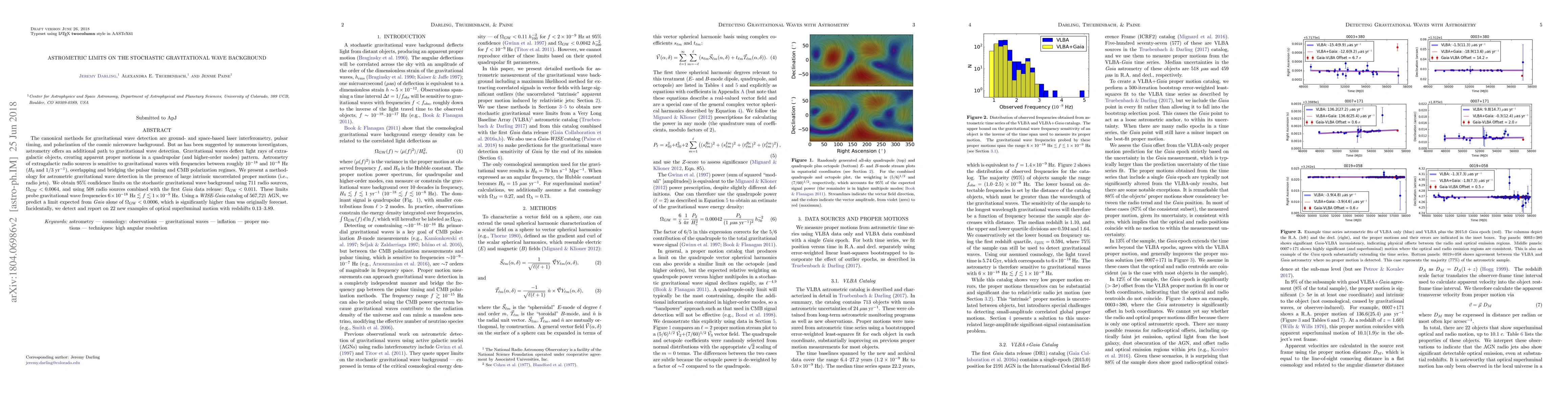 This paper explores astrometry as an alternative method for detecting gravitational waves, presenting a methodology to account for large intrinsic proper motions. It sets new 95% confidence limits on the stochastic gravitational wave background, improving upon previous forecasts and detecting 22 new examples of optical superluminal motion.