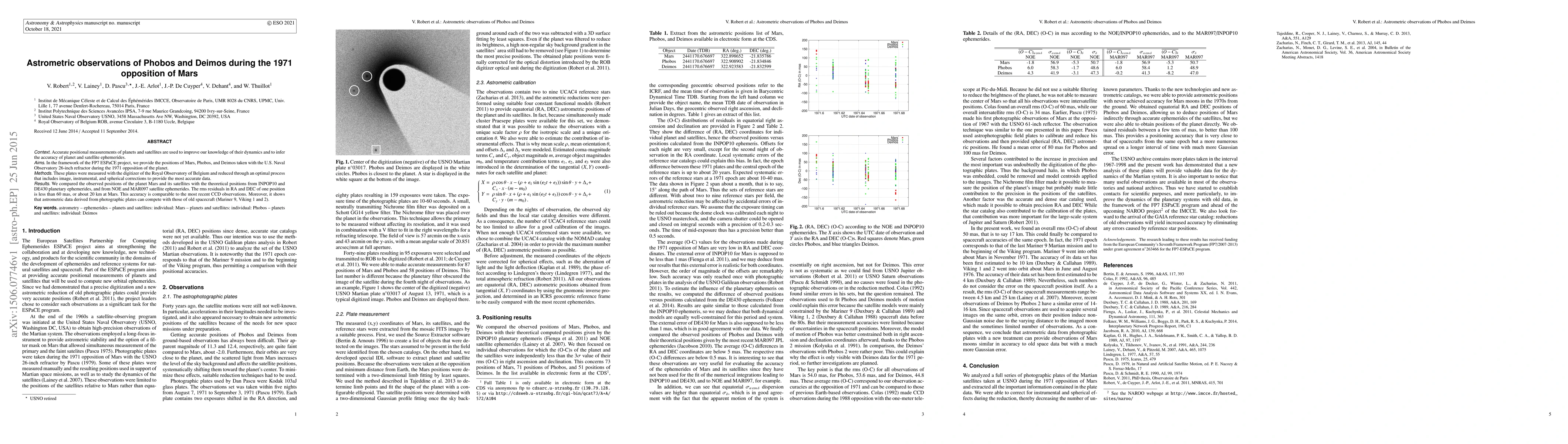 Accurate positional measurements of planets and satellites are used to improve our knowledge of their dynamics and to infer the accuracy of planet and satellite ephemerides. In the framework of the FP7 ESPaCE project, we provide the positions of Mars, Phobos, and Deimos taken with the U.S. Naval Observatory 26-inch refractor during the 1971 opposition of the planet. These plates were measured with the digitizer of the Royal Observatory of Belgium and reduced through an optimal process that includes image, instrumental, and spherical corrections to provide the most accurate data. We compared the observed positions of the planet Mars and its satellites with the theoretical positions from INPOP10 and DE430 planetary ephemerides, and from NOE and MAR097 satellite ephemerides. The rms residuals in RA and Dec. of one position is less than 60 mas, or about 20 km at Mars. This accuracy is comparable to the most recent CCD observations. Moreover, it shows that astrometric data derived from photographic plates can compete with those of old spacecraft (Mariner 9, Viking 1 and 2).