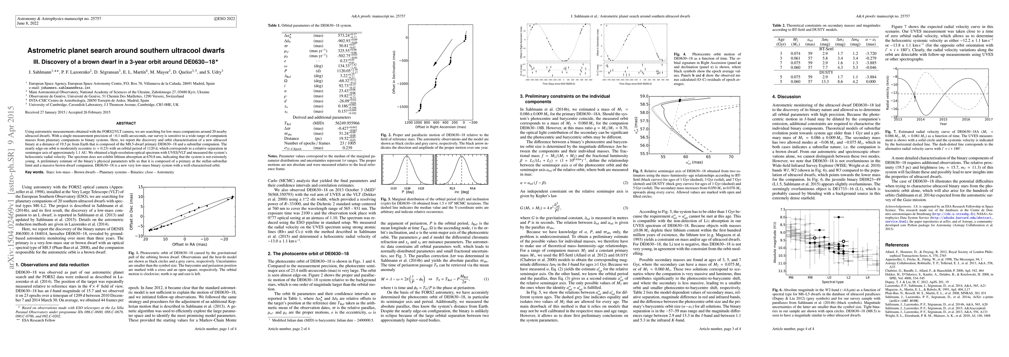 This paper reports the discovery of a brown dwarf in a 3-year orbit around the M8.5-dwarf DE0630-18, using astrometric measurements from the FORS2/VLT camera. The nearly edge-on orbit is moderately eccentric with an orbital period of 1120 days, indicating a new very low-mass binary system.