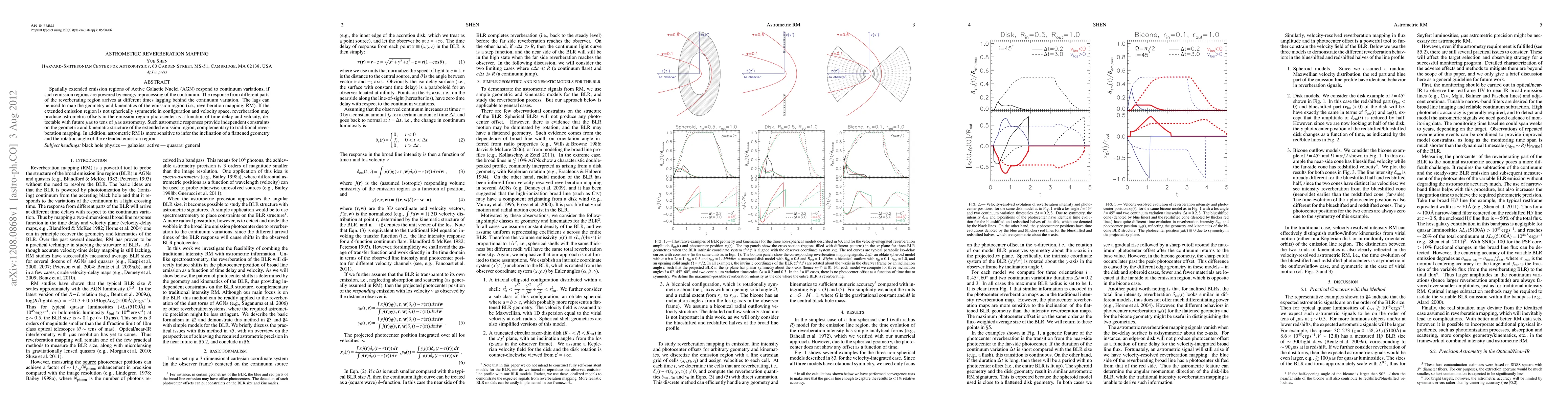 Astrometric reverberation mapping leverages time-delayed astrometric shifts in AGN emission regions to infer their geometry and kinematics, offering complementary insights to traditional reverberation mapping and enhanced sensitivity to inclination and rotation.