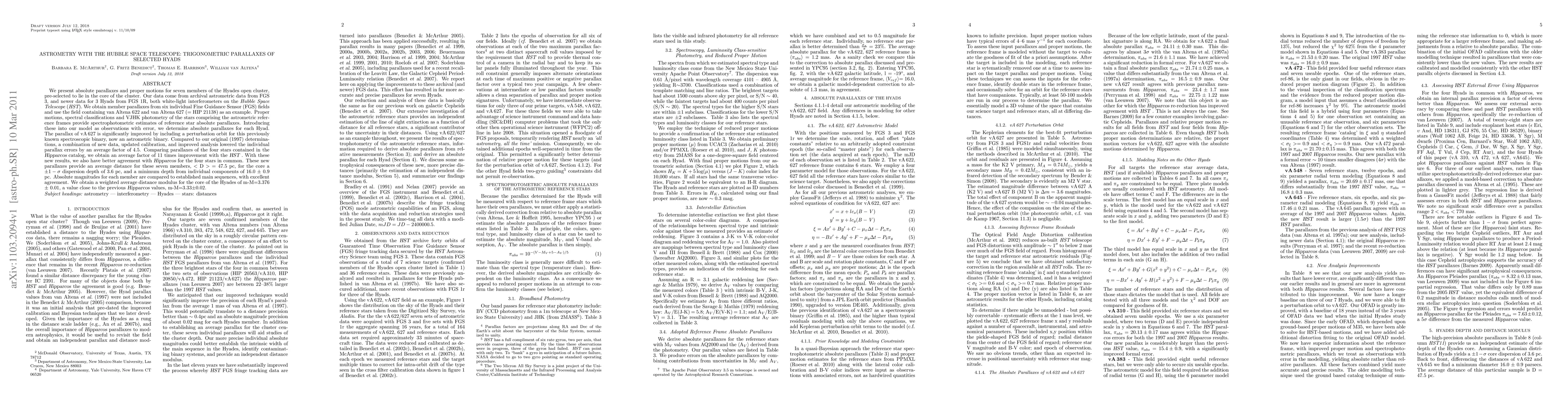 This paper reports improved trigonometric parallaxes and proper motions for seven Hyades stars using Hubble Space Telescope data, achieving a 4.5-fold reduction in parallax errors compared to earlier measurements. The new parallaxes provide a more precise distance estimate for the Hyades cluster core.