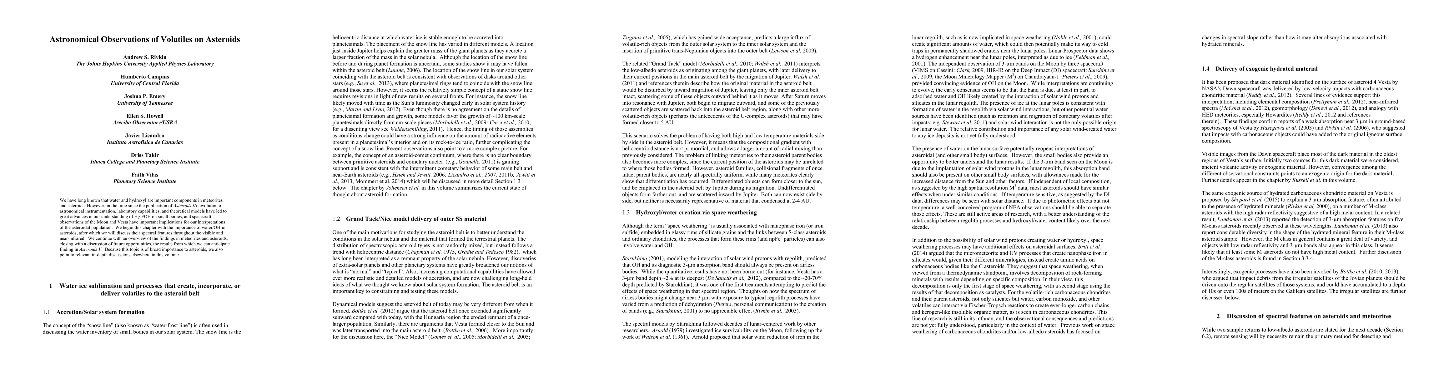 We have long known that water and hydroxyl are important components in meteorites and asteroids. However, in the time since the publication of Asteroids III, evolution of astronomical instrumentation, laboratory capabilities, and theoretical models have led to great advances in our understanding of H2O/OH on small bodies, and spacecraft observations of the Moon and Vesta have important implications for our interpretations of the asteroidal population. We begin this chapter with the importance of water/OH in asteroids, after which we will discuss their spectral features throughout the visible and near-infrared. We continue with an overview of the findings in meteorites and asteroids, closing with a discussion of future opportunities, the results from which we can anticipate finding in Asteroids V. Because this topic is of broad importance to asteroids, we also point to relevant in-depth discussions elsewhere in this volume.
