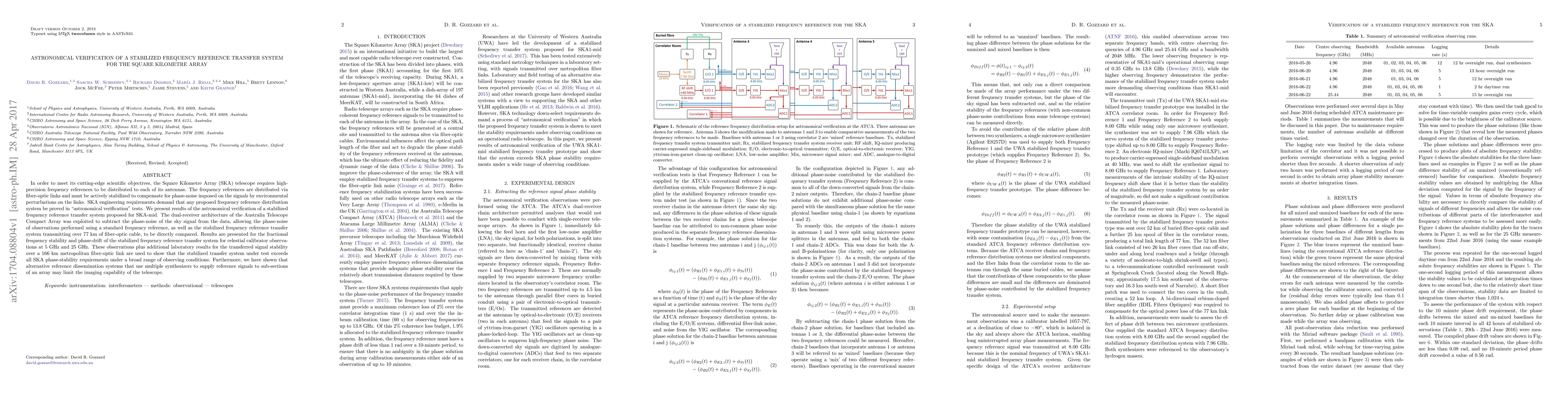 In order to meet its cutting-edge scientific objectives, the Square Kilometre Array (SKA) telescope requires high-precision frequency references to be distributed to each of its antennas. The frequency references are distributed via fiber-optic links and must be actively stabilized to compensate for phase-noise imposed on the signals by environmental perturbations on the links. SKA engineering requirements demand that any proposed frequency reference distribution system be proved in "astronomical verification" tests. We present results of the astronomical verification of a stabilized frequency reference transfer system proposed for SKA-mid. The dual-receiver architecture of the Australia Telescope Compact Array was exploited to subtract the phase-noise of the sky signal from the data, allowing the phase-noise of observations performed using a standard frequency reference, as well as the stabilized frequency reference transfer system transmitting over 77 km of fiber-optic cable, to be directly compared. Results are presented for the fractional frequency stability and phase-drift of the stabilized frequency reference transfer system for celestial calibrator observations at 5 GHz and 25 GHz. These observations plus additional laboratory results for the transferred signal stability over a 166 km metropolitan fiber-optic link are used to show that the stabilized transfer system under test exceeds all SKA phase-stability requirements under a broad range of observing conditions. Furthermore, we have shown that alternative reference dissemination systems that use multiple synthesizers to supply reference signals to sub-sections of an array may limit the imaging capability of the telescope.