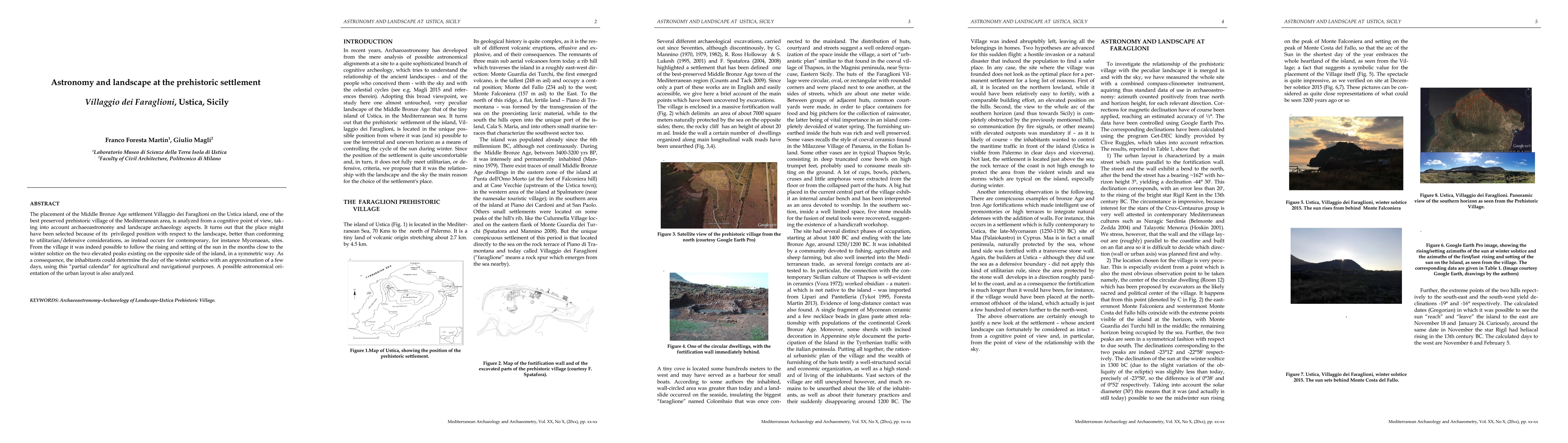 The placement of the Middle Bronze Age settlement Villaggio dei Faraglioni on the Ustica island, one of the best preserved prehistoric village of the Mediterranean area, is analyzed from a cognitive point of view, taking into account archaeoastronomy and landscape archaeology aspects. It turns out that the place might have been selected because of its privileged position with respect to the landscape, better than conforming to utilitarian/defensive considerations, as instead occurs for contemporary, for instance Mycenaean, sites. From the village it was indeed possible to follow the rising and setting of the sun in the months close to the winter solstice on the two elevated peaks existing on the opposite side of the island, in a symmetric way. As a consequence, the inhabitants could determine the day of the winter solstice with an approximation of a few days, using this partial calendar for agricultural and navigational purposes. A possible astronomical orientation of the urban layout is also analyzed