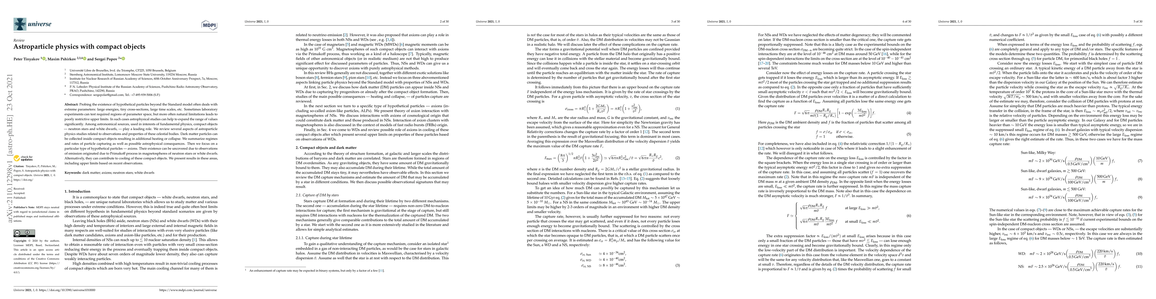 The paper reviews astroparticle physics studies related to compact objects like neutron stars and white dwarfs, focusing on their potential for probing hypothetical particles beyond the Standard Model, such as dark matter particles and axions.