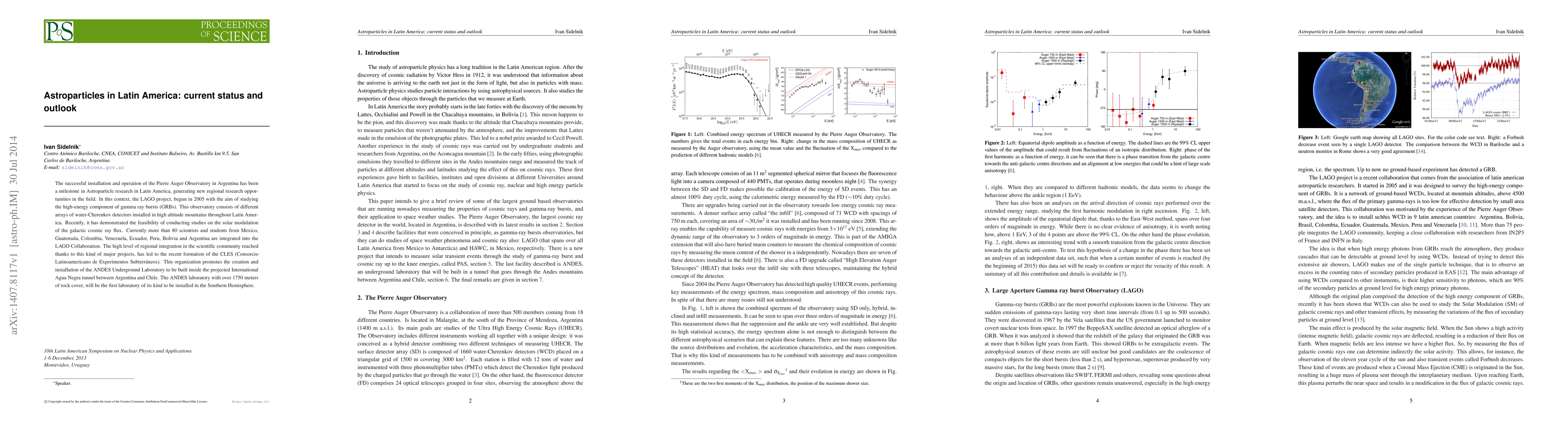 The LAGO project in Latin America has successfully studied the solar modulation of galactic cosmic rays, demonstrating regional integration in astroparticle research. A new underground laboratory, ANDES, is being planned to further advance research in the region, with over 1750 meters of rock cover.