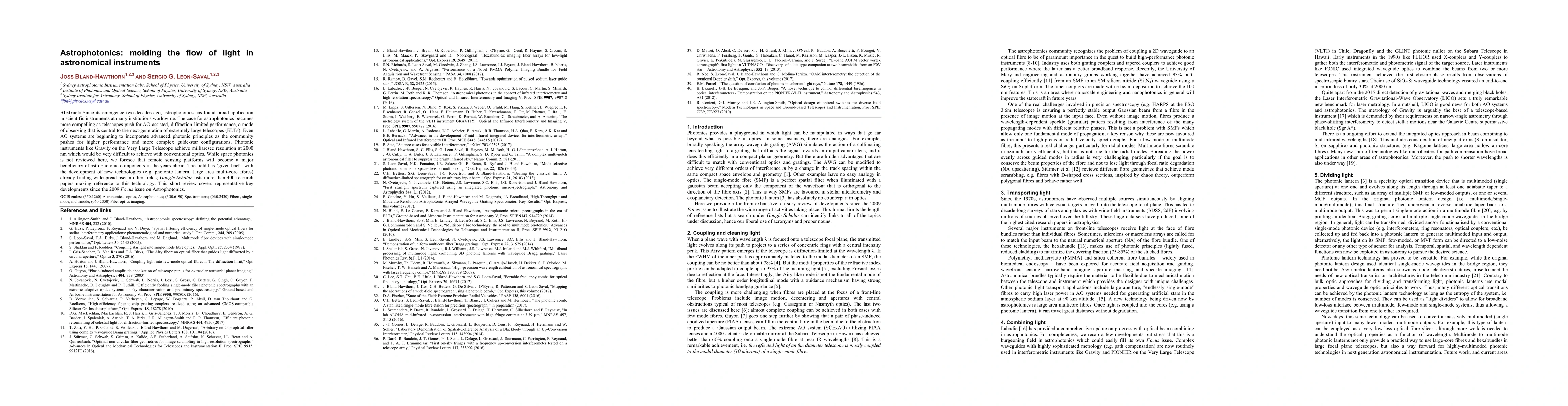 This paper reviews the significant advancements in astrophotonics, focusing on its application in enhancing the performance of astronomical instruments, particularly for next-generation telescopes. Key developments include photonic systems achieving unprecedented resolution and the emergence of technologies that are also benefiting other fields.