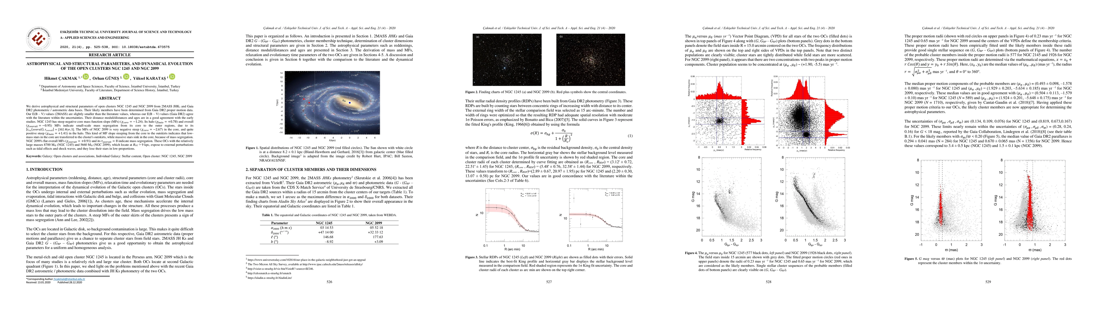 We derive astrophysical and structural parameters of open clusters NGC 1245 and NGC 2099 from 2MASS JHKs and Gaia DR2 photometric / astrometric data bases. Their likely members have been determined from Gaia DR2 proper motion data. Our E(B-V) values (2MASS) are slightly smaller than the literature values, whereas our E(B-V) values (Gaia DR2) agree with the literature within the uncertainties. Their distance moduli/distances and ages are in good coincident with the literature. NGC 1245 has steep negative core mass function slope (MFs) ({\chi}_core=-1.24). Its halo ({\chi}_halo=+0.78) and overall ({\chi}_overall=-0.95) MFs mean that it presents signs of small-scale mass segregation to the outer regions from its core, due to its [{\tau}_rlx (overall),{\tau}_overall ]=[302 Myr,5]. The MFs of NGC 2099 is very negative steep ({\chi}_core=-2.67) in the core, and quite positive steep ({\chi}_halo=+1.41) in the halo. This kind of MF slope steeping from the core to the outskirts indicates that low-mass stars in the core are transferred to the cluster's outskirts, while massive stars sink in the core, because of mass segregation. NGC 2099's flat overall MFs ({\chi}_overall=+0.91) and its {\tau}_overall=8 presents a sign of mass segregation. These OCs with the relatively large masses 8700 Msolar (NGC 1245) and 5660 Msolar (NGC 2099), which locate at RGC > 9 kpc, expose to external perturbations such as tidal effects and shock waves, and they lose their stars in low-proportions.