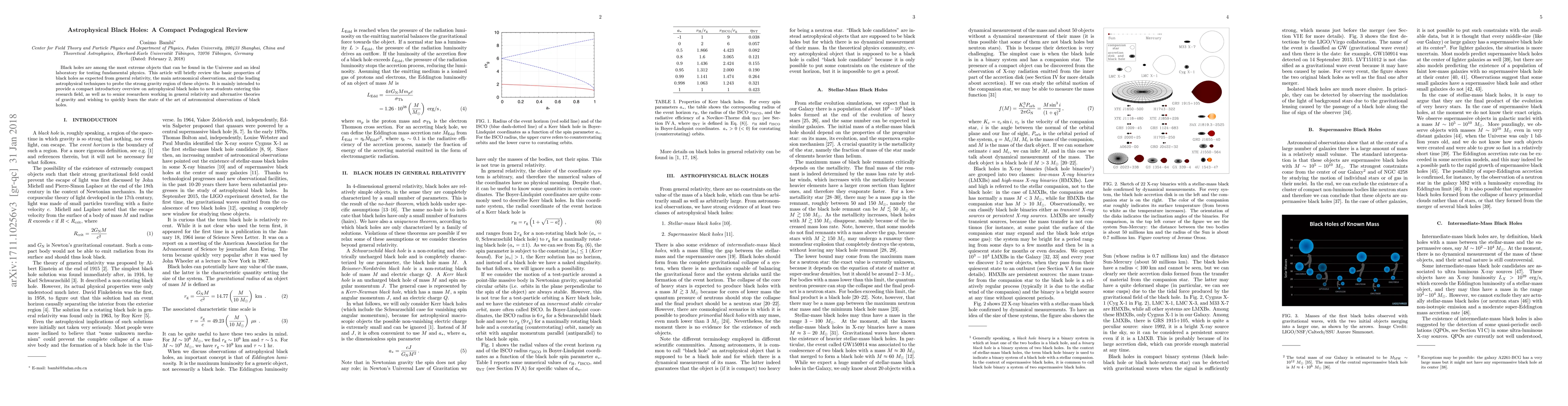 This paper offers a concise overview of astrophysical black holes, summarizing their fundamental properties as predicted by general relativity, key astronomical observations, and advanced techniques used to explore the intense gravitational regions around them, aimed at both newcomers and experienced researchers in the field.
