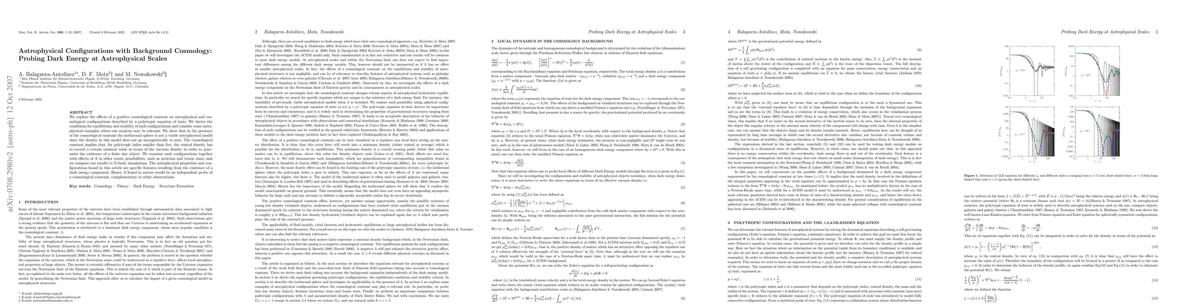 This research investigates the impact of a positive cosmological constant on astrophysical configurations, focusing on polytropic equations of state. It reveals that an isothermal sphere isn't a viable model due to non-zero asymptotic density, and establishes minimal central density requirements for finite objects under a cosmological constant. The study also explores these effects on neutrino and boson stars, suggesting that detecting such configurations could independently verify the presence of dark energy.