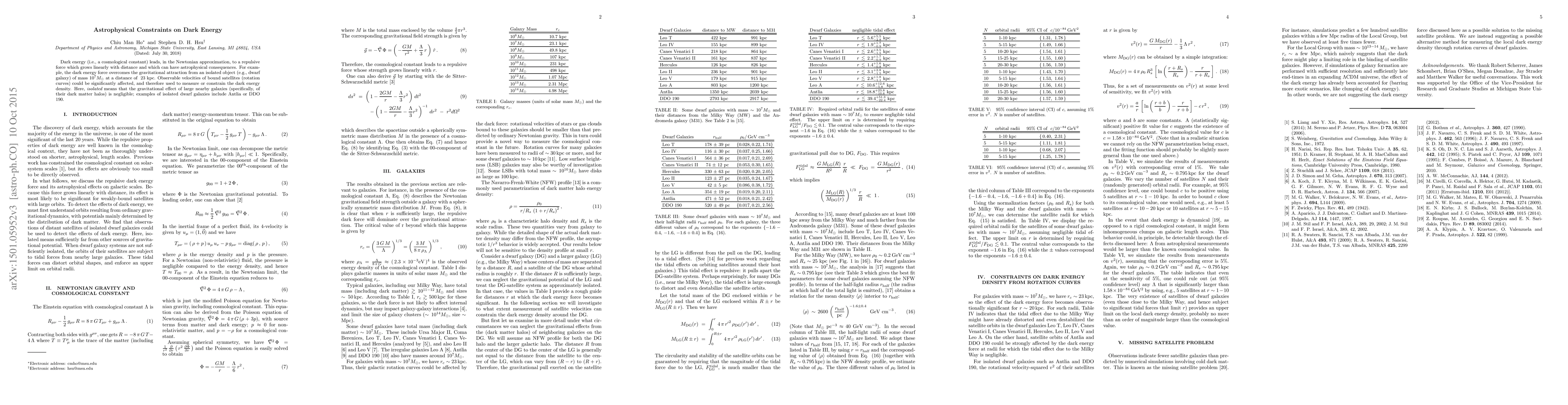 Dark energy (i.e., a cosmological constant) leads, in the Newtonian approximation, to a repulsive force which grows linearly with distance and which can have astrophysical consequences. For example, the dark energy force overcomes the gravitational attraction from an isolated object (e.g., dwarf galaxy) of mass $10^7 M_\odot$ at a distance of $~ 23$ kpc. Observable velocities of bound satellites (rotation curves) could be significantly affected, and therefore used to measure or constrain the dark energy density. Here, {\it isolated} means that the gravitational effect of large nearby galaxies (specifically, of their dark matter halos) is negligible; examples of isolated dwarf galaxies include Antlia or DDO 1903