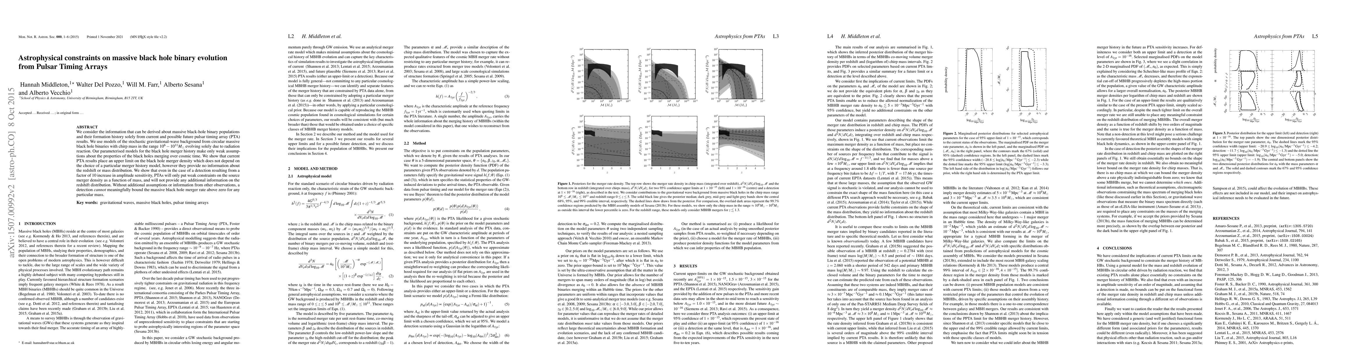 This paper examines how pulsar timing arrays (PTAs) can constrain the evolution and merger history of massive black hole binaries. Current PTA results set an upper limit on the merger density but offer no insights into redshift or mass distribution, and even improved sensitivity will only weakly constrain mass-dependent merger rates without additional observational data.