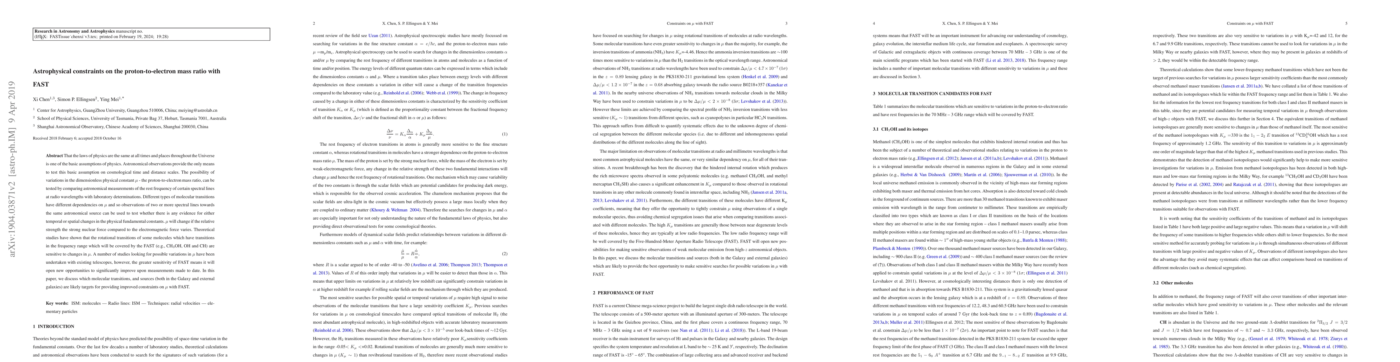 That the laws of physics are the same at all times and places throughout the Universe is one of the basic assumptions of physics. Astronomical observations provide the only means to test this basic assumption on cosmological time and distance scales. The possibility of variations in the dimensionless physical constant {\mu} - the proton-to-electron mass ratio, can be tested by comparing astronomical measurements of the rest frequency of certain spectral lines at radio wavelengths with laboratory determinations. Different types of molecular transitions have different dependencies on {\mu} and so observations of two or more spectral lines towards the same astronomical source can be used to test whether there is any evidence for either temporal or spatial changes in the physical fundamental constants. {\mu} will change if the relative strength of the strong nuclear force compared to the electromagnetic force varies. Theoretical studies have shown that the rotational transitions of some molecules which have transitions in the frequency range that will be covered by FAST (e.g., CH3OH, OH and CH) are sensitive to changes in {\mu}. A number of studies looking for possible variations in {\mu} have been undertaken with existing telescopes, however, the greater sensitivity of FAST means it will open new opportunities to significantly improve upon measurements made to date. In this paper, we discuss which molecular transitions and sources (both in the Galaxy and external galaxies) are likely targets for providing improved constraints on {\mu} with FAST.