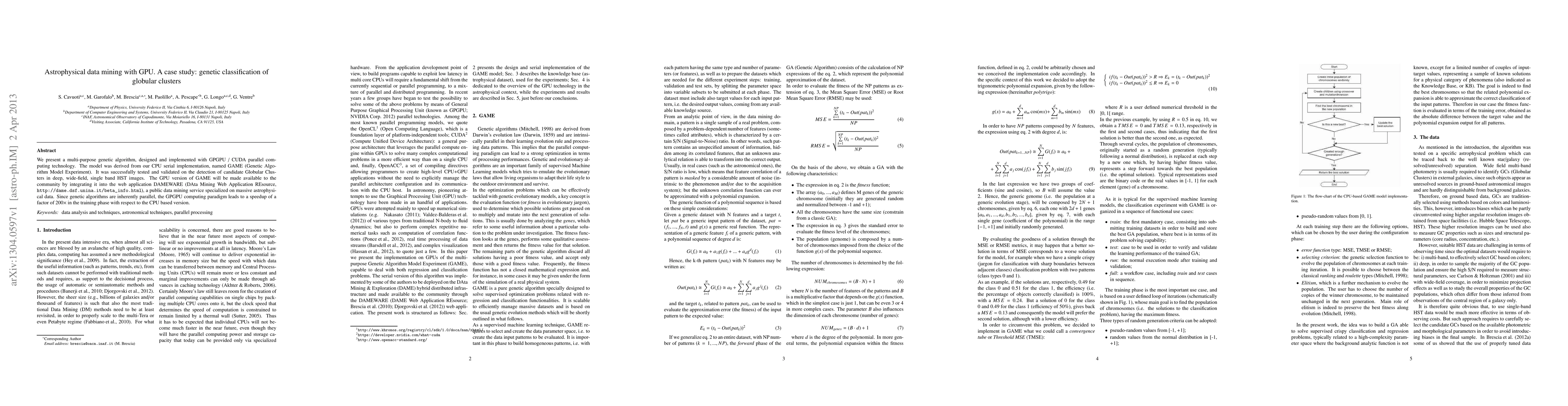 This paper introduces a GPU-based genetic algorithm for classifying globular clusters in deep space images, achieving a 200x speedup compared to its CPU-based predecessor. The algorithm will be accessible via the DAMEWARE web application for public astrophysical data mining.