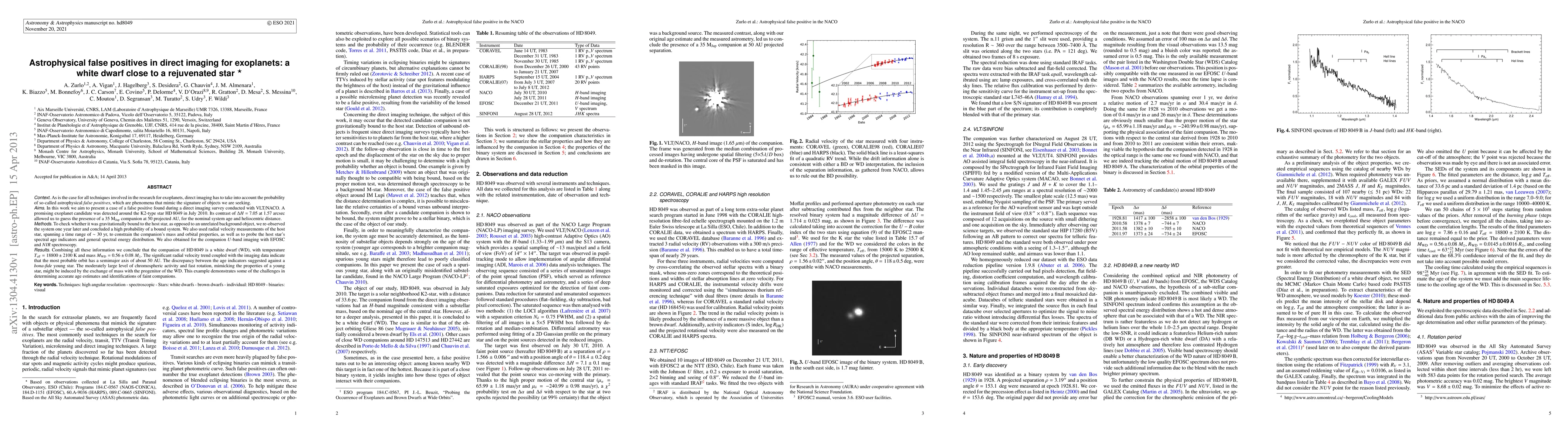 As is the case for all techniques involved in the research for exoplanets, direct imaging has to take into account the probability of so-called astrophysical false positives, which are phenomena that mimic the signature of objects we are seeking. In this work we aim to present a case of a false positive found during a direct imaging survey conducted with VLT/NACO. A promising exoplanet candidate was detected around the K2-type star HD\,8049 in July 2010.Its contrast of $\Delta H$=7.05 at 1.57 arcsec allowed us to guess the presence of a 35 \MJup companion at 50 projected AU, for the nominal system age and heliocentric distance.To check whether it was gravitationally bound to the host star, as opposed to an unrelated background object, we re-observed the system one year later and concluded a high probability of a bound system. We also used radial velocity measurements of the host star, spanning a time range of $\sim$ 30 yr, to constrain the companion's mass and orbital properties, as well as to probe the host star's spectral age indicators and general spectral energy distribution. We also obtained for the companion $U$-band imaging with EFOSC and $NIR$ spectroscopy. Combining all these information we conclude that the companion of HD\,8049 is a white dwarf (WD), with temperature $T_{eff}=18800 \pm 2100$ K and mass $M_{WD}=0.56 \pm 0.08 M_{\odot}$. The significant radial velocity trend coupled with the imaging data indicate that the most probable orbit has a semimajor axis of about 50 AU.The discrepancy between the age indicators suggested against a bona-fide young star. The moderately large level of chromospheric activity and fast rotation, mimicking the properties of a young star, might be induced by the exchange of mass with the progenitor of the WD. This example demonstrates some of the challenges in determining accurate age estimates and identifications of faint companions.