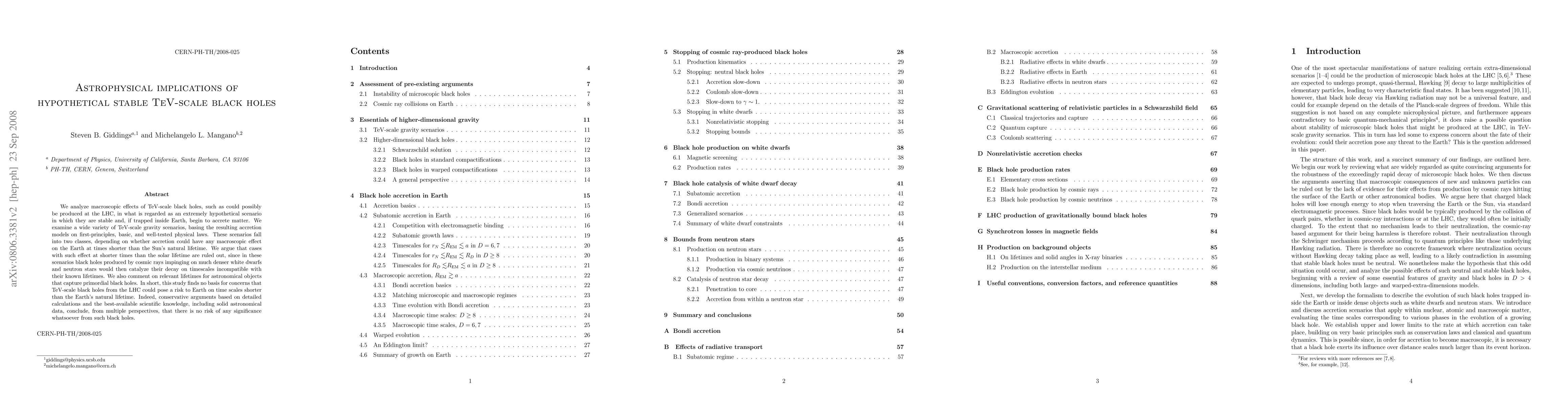 This paper explores the astrophysical implications of hypothetical stable TeV-scale black holes, suggesting they pose no significant risk to Earth on timescales shorter than the Earth's natural lifetime. The study rules out scenarios where such black holes could catalyze the decay of dense astronomical objects, concluding that concerns about their impact are unfounded.