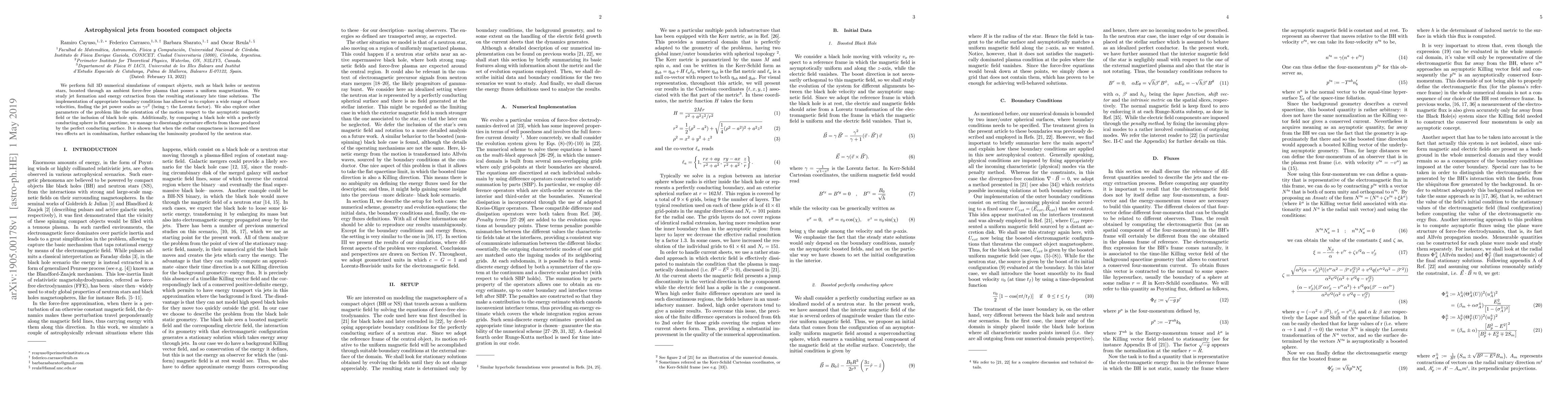 We perform full 3D numerical simulations of compact objects, such as black holes or neutron stars, boosted through an ambient force-free plasma that posses a uniform magnetization. We study jet formation and energy extraction from the resulting stationary late time solutions.The implementation of appropriate boundary conditions has allowed us to explore a wide range of boost velocities, finding the jet power scales as $\gamma v^2$ (being $\gamma$ the Lorentz factor). We also explore other parameters of the problem like the orientation of the motion respect to the asymptotic magnetic field or the inclusion of black hole spin. Additionally, by comparing a black hole with a perfectly conducting sphere in flat spacetime, we manage to disentangle curvature effects from those produced by the perfect conducting surface. It is shown that when the stellar compactness is increased these two effects act in combination, further enhancing the luminosity produced by the neutron star.