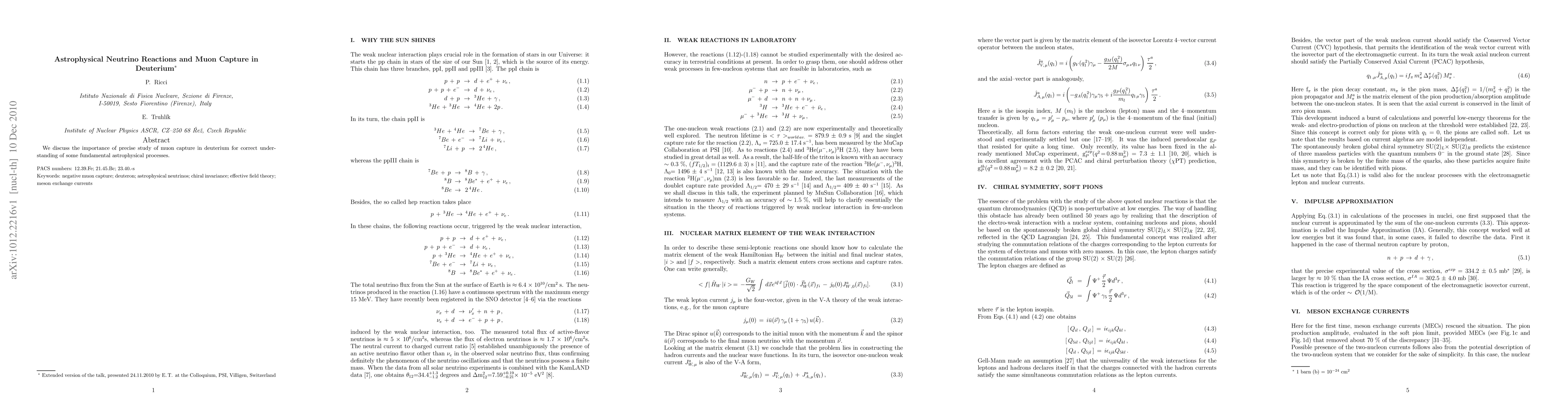 We discuss the importance of precise study of muon capture in deuterium for correct understanding of some fundamental astrophysical processes